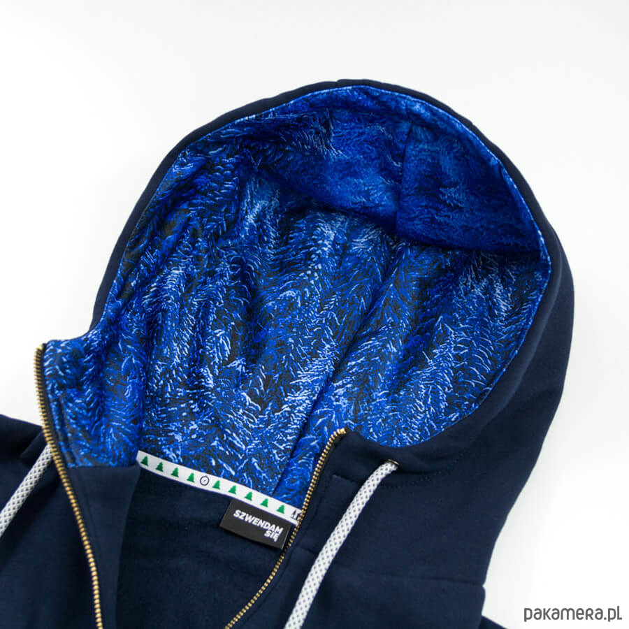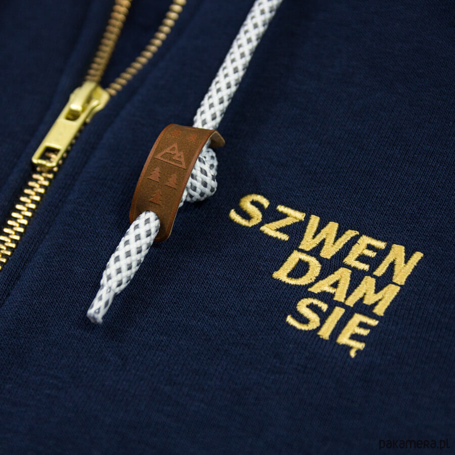 Granatowa bluza z kapturem została wyposażona w wytrzymały i niezawodny suwak metalowy umożliwiający jej całkowite rozpięcie. Rozwiązanie takie jest przydatne w trakcie uprawiania różnych aktywności np. podczas jazdy na desce, gdyż w prosty sposób poprawia wentylację. W bluzach rozpinanych Szwendam się wyjście w teren to czysta przyjemność, nie groźny im górski szlak i dzika knieja. Bluza została uszyta z bardzo grubej i miękkiej dzianiny dresowej. Wysoka gramatura powoduje, że jest niezwykle ciepła.