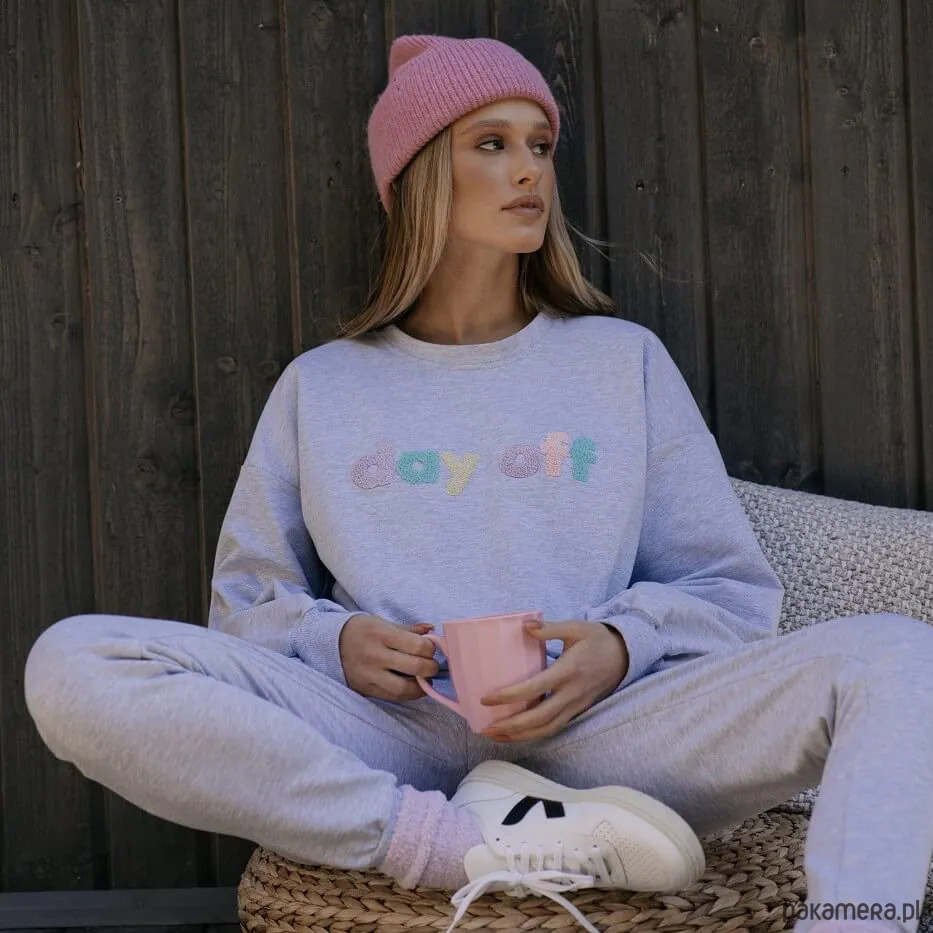 Szara bawełniana bluza o kroju regular fit z ozdobnym haftem chenille day off. Pastelowa propozycja kolorystyczna dla miłośniczek kolorów i nietuzinkowych akcentów. Kobiecego charakteru nadają także oryginalne, lekko bufiaste rękawy. To idealna propozycja na leniwe weekendy, wolne dni lub niezobowiązujące spotkania. Bluza jest uszyta z wysokojakościowej bawełny, dzięki czemu jest miękka, przyjemna dla skóry i miła w dotyku. Idealna grubość bawełny sprawia, ze bluza jest całoroczna. Bluzazostała zaprojektowana i wykonana w Polsce.