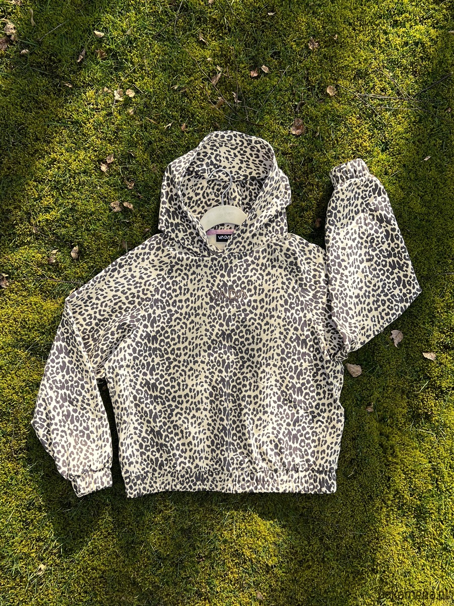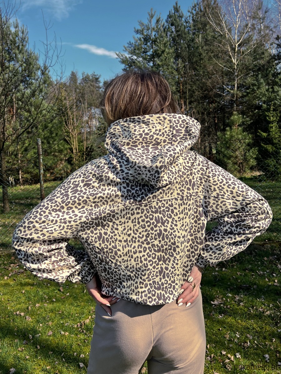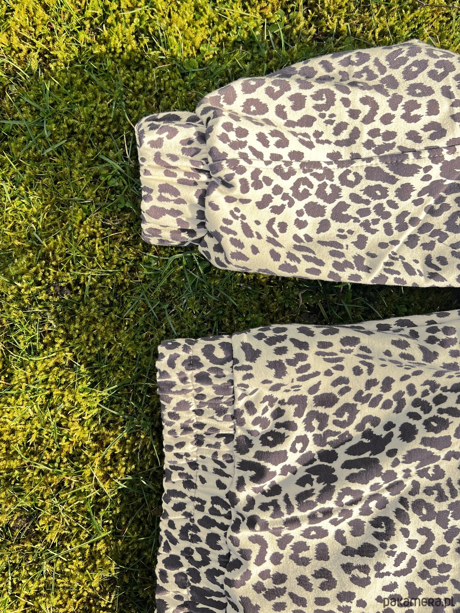 Bluza damska z mięsistej dresówki w ciemno brązowe cętki na śmietankowym tle. Modny zwierzęcy wzór w cętki doda oryginalności Twojej stylizacji. Fason z luźnymi długimi rękawami raglan, z dodatkowym przeszyciem - stebnowaniem. Bluza jest funkcjonalna orasz komfortowa w użytkowaniu. Elastyczna guma w pasie jak i na rękawach zapewnia dobre dopasowanie jak i wygodę noszenia.