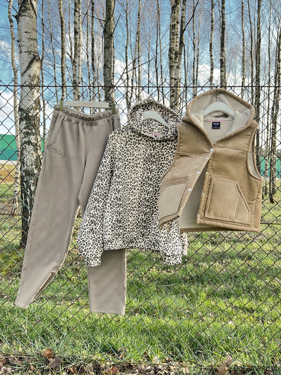 Sprawdź pozostałe produkty, które dopasujesz do bluzy, np. spodnie dresowe w kolorze ciemnego beżu i sztruksowa kamizelka z barankiem