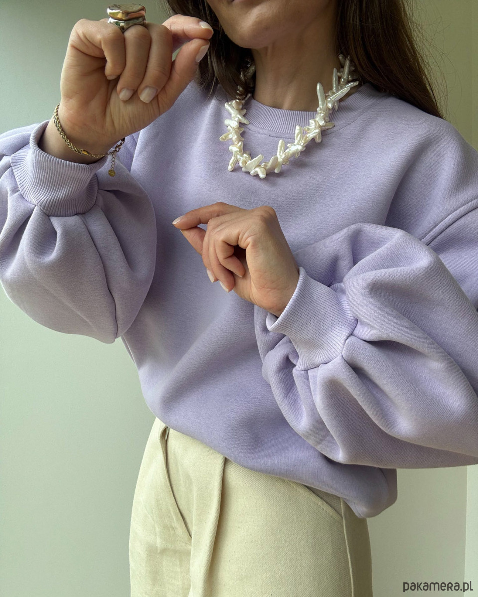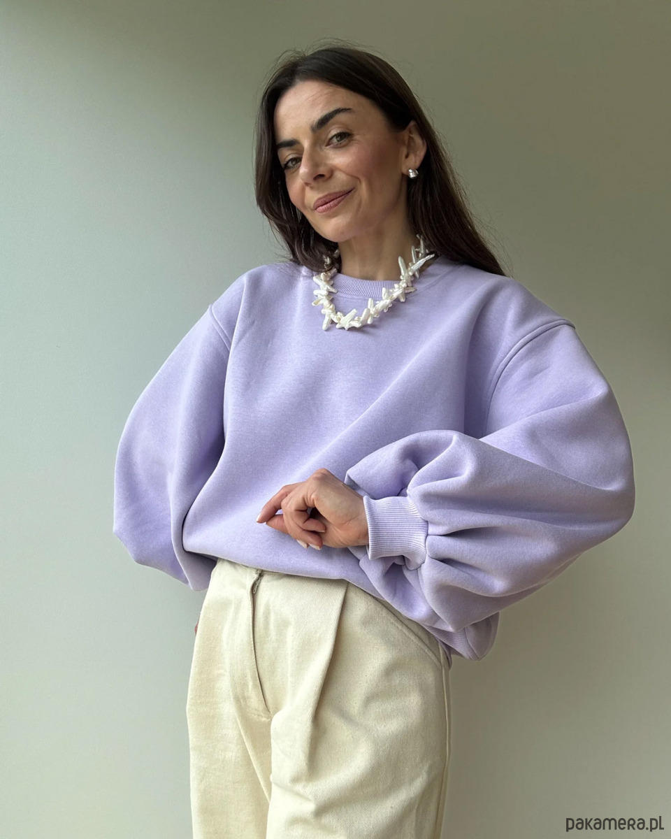Bawełniana bluza Enjoyable w kolorze lila z unikatowymi rękawami. Odkryj wyjątkowość naszej premium bawełnianej bluzy, która łączy w sobie niepowtarzalny styl i bezkompromisową jakość. Ta elegancka bluza w głębokim odcieniu bordowym jest zaprojektowana z myślą o wyrafinowanych klientach, którzy cenią sobie oryginalność oraz wygodę noszenia.i