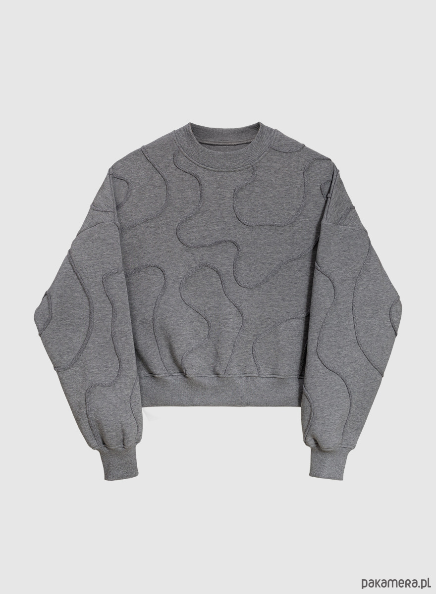 Jedyna w swoim rodzaju bluza dresowa w kolorze czarnym z ręcznie przyszywanym dekoracyjnym wzorem z bawełnianego sznurka. Uszyta z super miękkiej i przyjemnej w dotyku wysokogatunkowej dzianiny bawełnianej, certyfikowanej znakiem OEKO-TEX, co oznacza, że jest bezpieczna dla Twojej skóry i środowiska. Nie mechaci się, nie wyciąga się, nie wypycha np. na łokciach, a kolor nie blaknie. Bardzo wygodna. Rękawy, dekolt i dół wykończone bawełnianym ściągaczem.