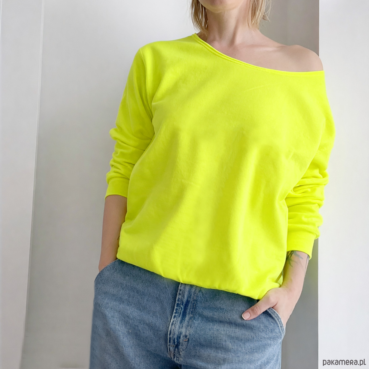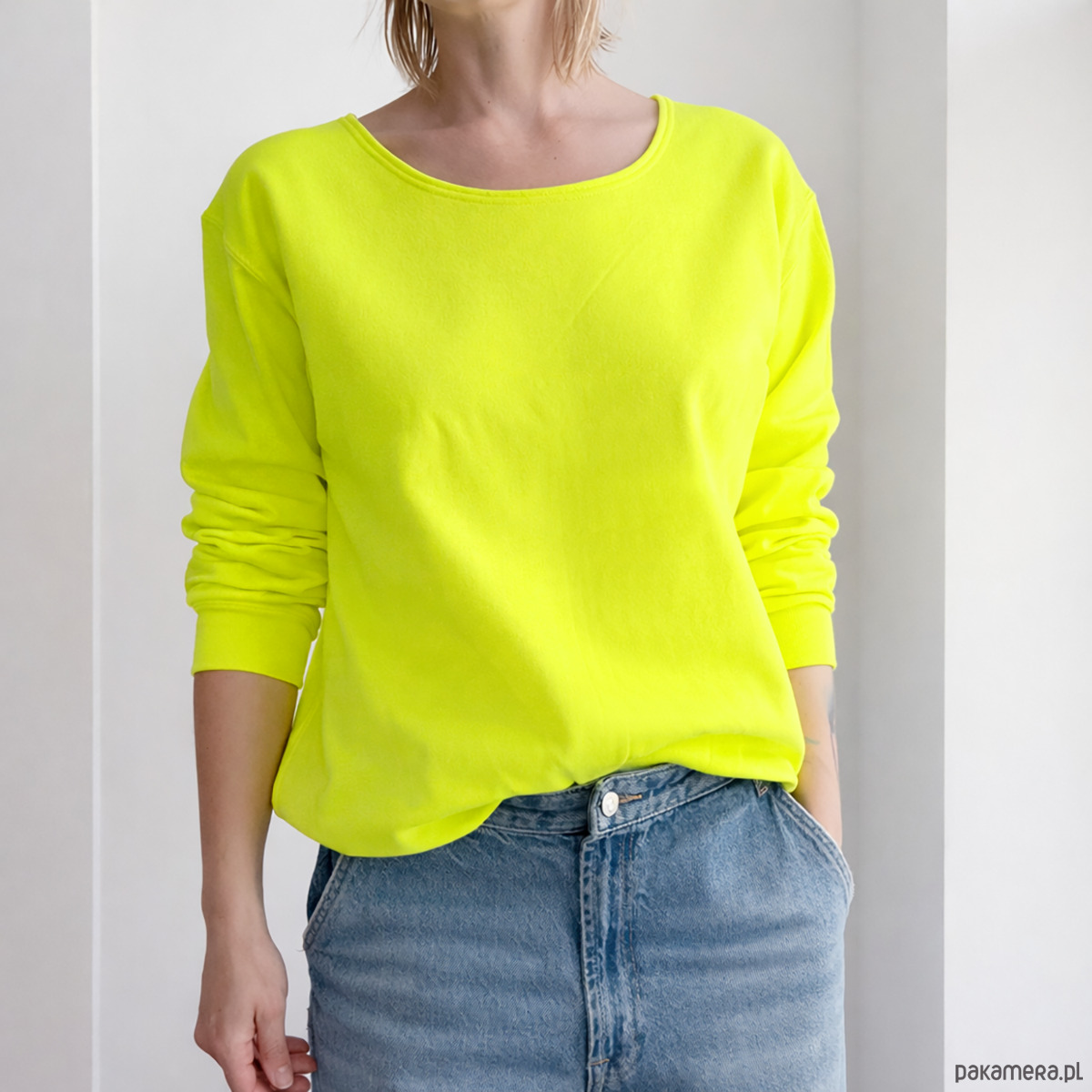 Bluza w kolorze żółtego fluorescencyjnego zakreślacza.