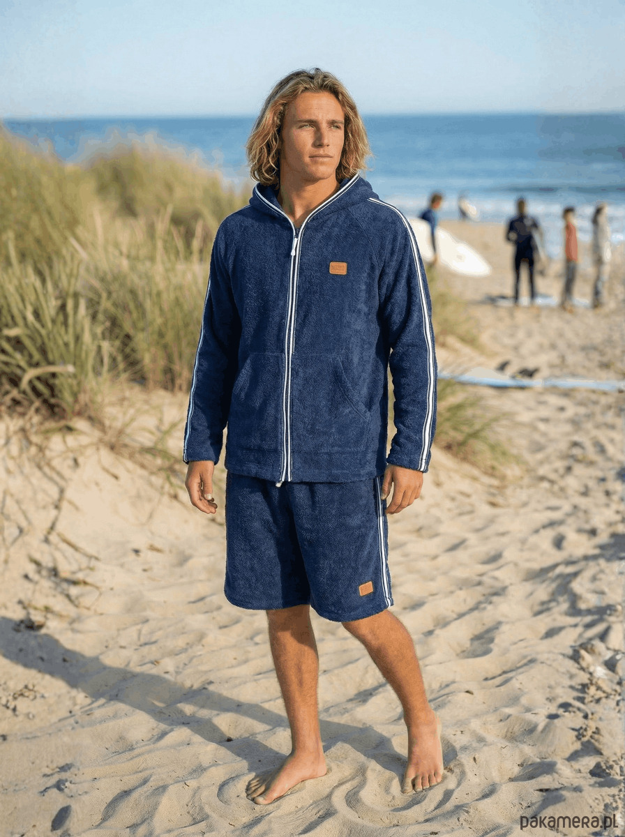 Uniwersalny krój: sprawdza się jako męska bluza sportowa, lub ponczo plażowe.