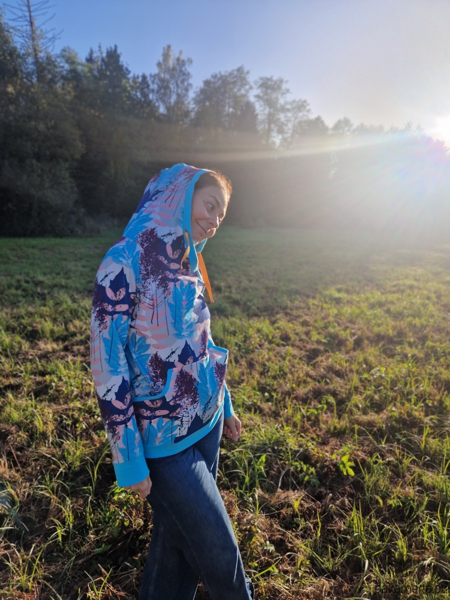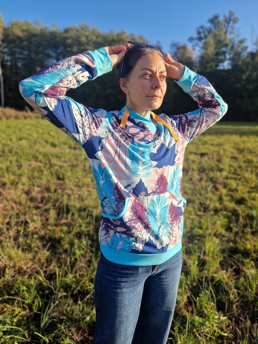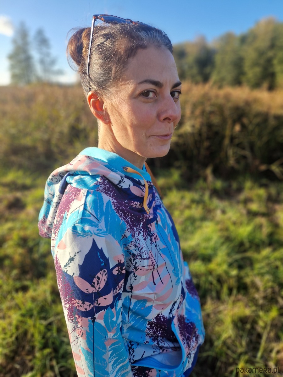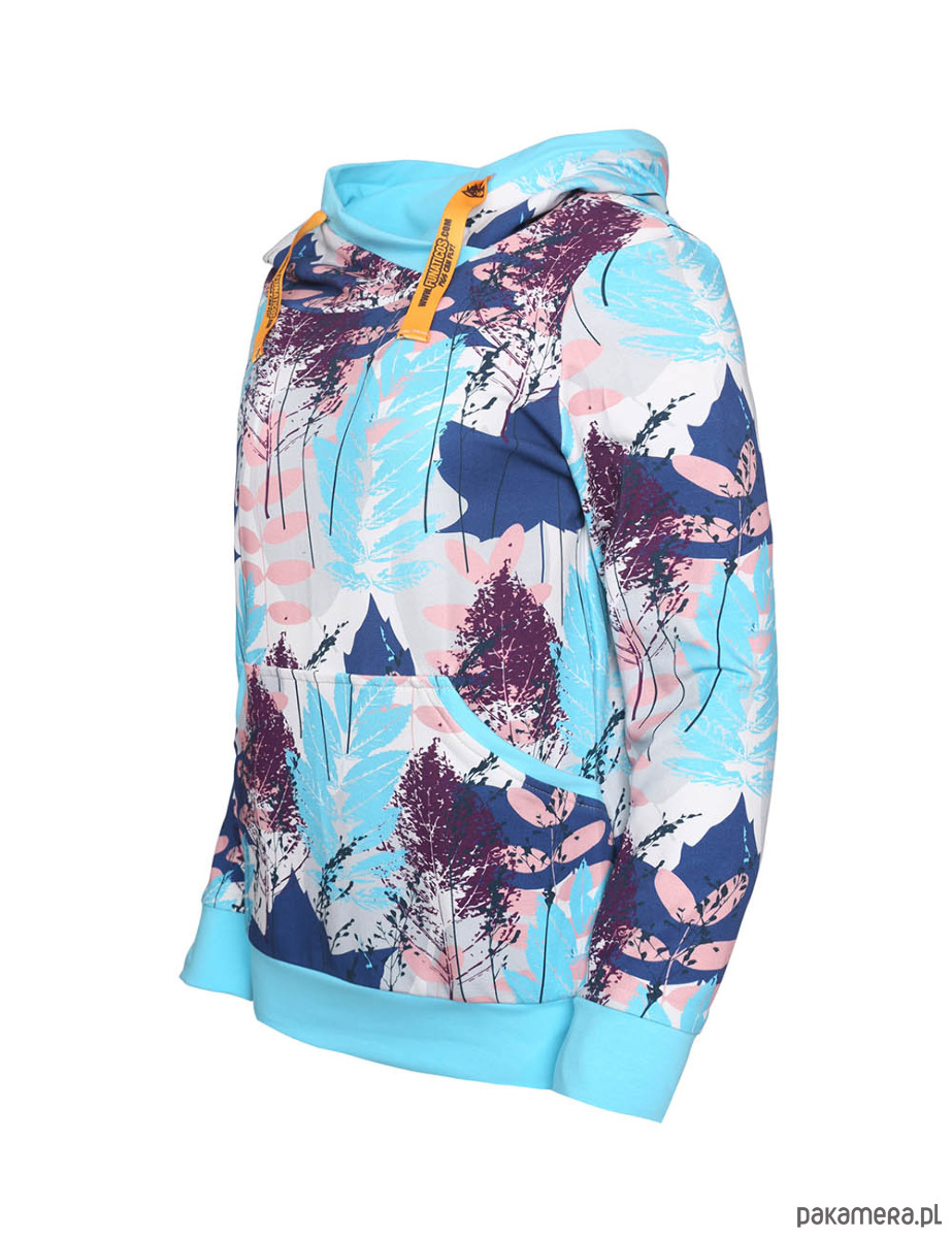 Bluza kangurka z kapturem Jukon to wyjątkowy projekt, który łączy w sobie polskie rzemiosło z inspiracją naturą Kanady. Jej nazwa oraz wzór z liśćmi klonu odwołują się do symbolu tego kraju i surowego, dzikiego piękna północnych krajobrazów. Utrzymana w chłodnych błękitnych odcieniach, przywodzi na myśl spokojne jeziora, górskie przestrzenie i świeże, czyste powietrze.
