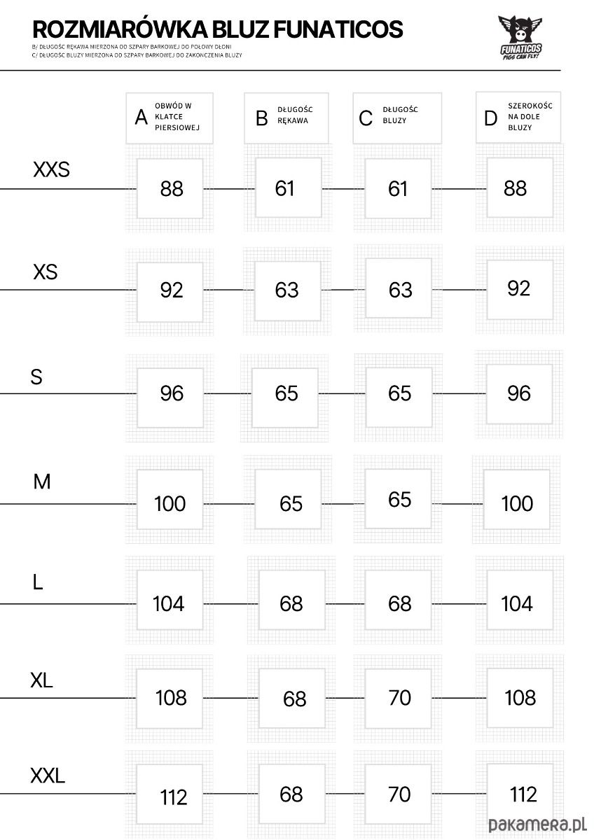 UWAGA: Pozostałe rozmiary dostępne w ciągu tygodnia od daty zamówienia. Koszt bluzy szytej na miarę wykraczającej poza rozmiar 2XL jest wyższy od standardowej ceny o 30 złotych.