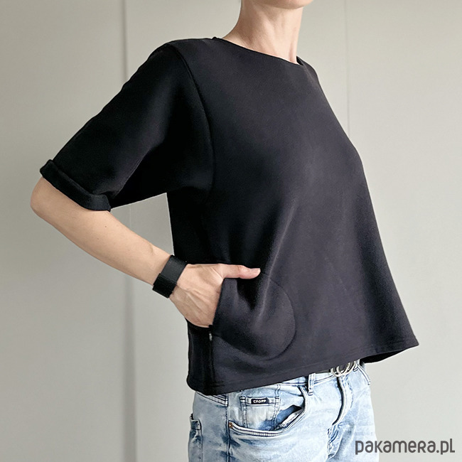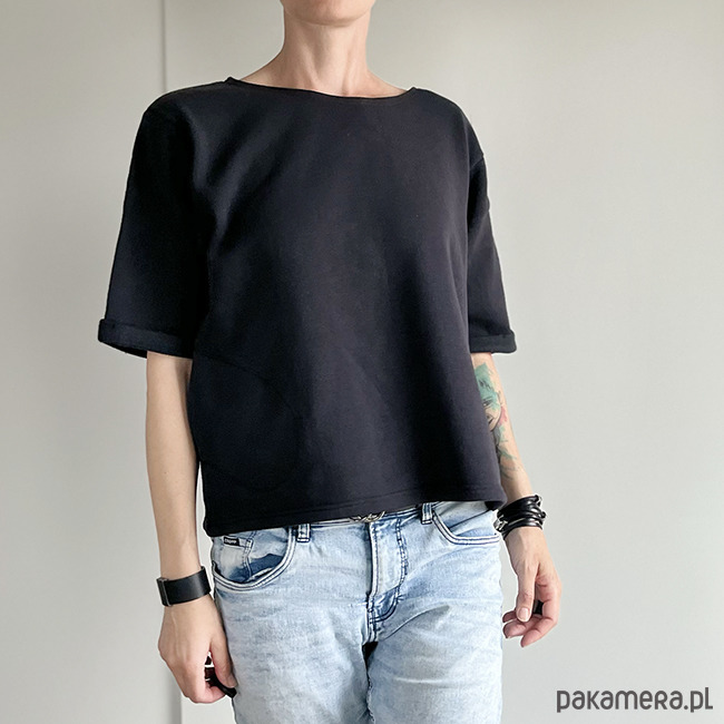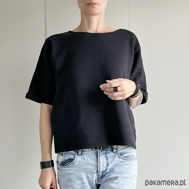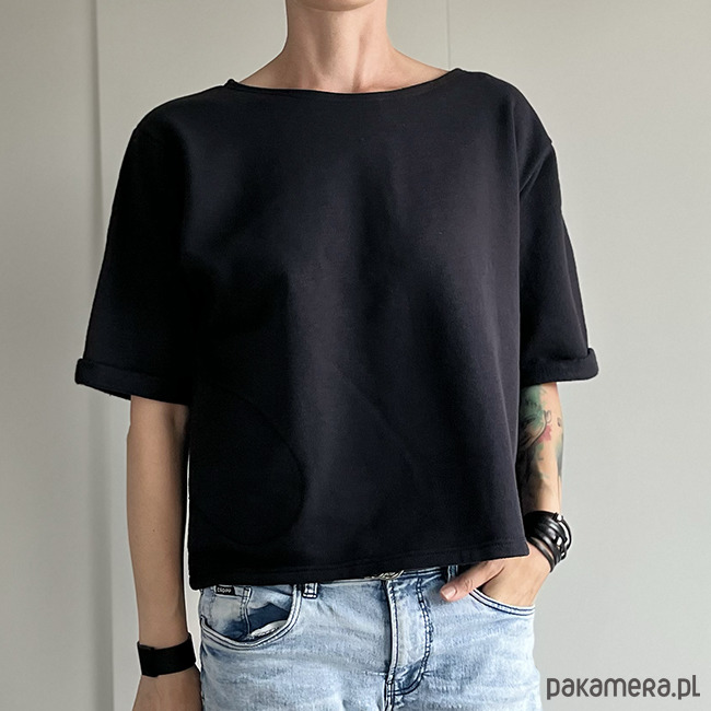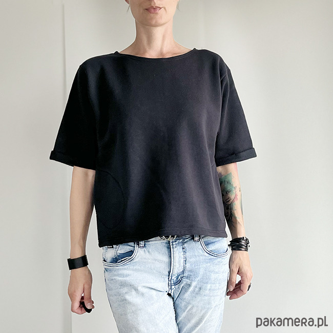 Bluza krótki rękaw bez ściągaczy kieszenie Czarna