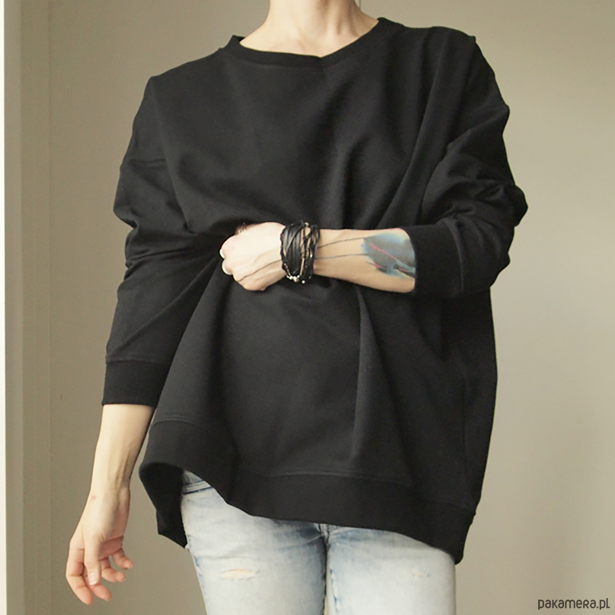 Uszyta z dzianiny pętelkowej nie jest tak ciężka jak dresówka drapana, za to swobodnie się układa.