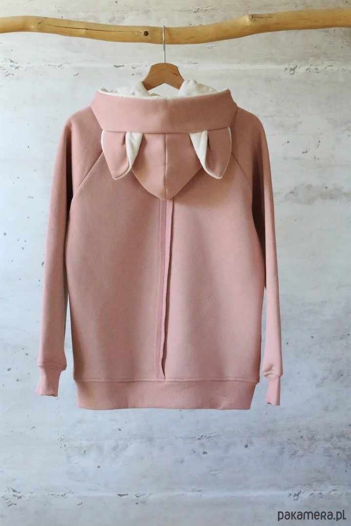 Bluza z dużym kapturem z uszami, tym razem kota. Bardzo praktyczna bowiem przydaje się zarówno na porę jesień/zima jak i na chłodniejsze letnie wieczory. Zapinana na zamek.