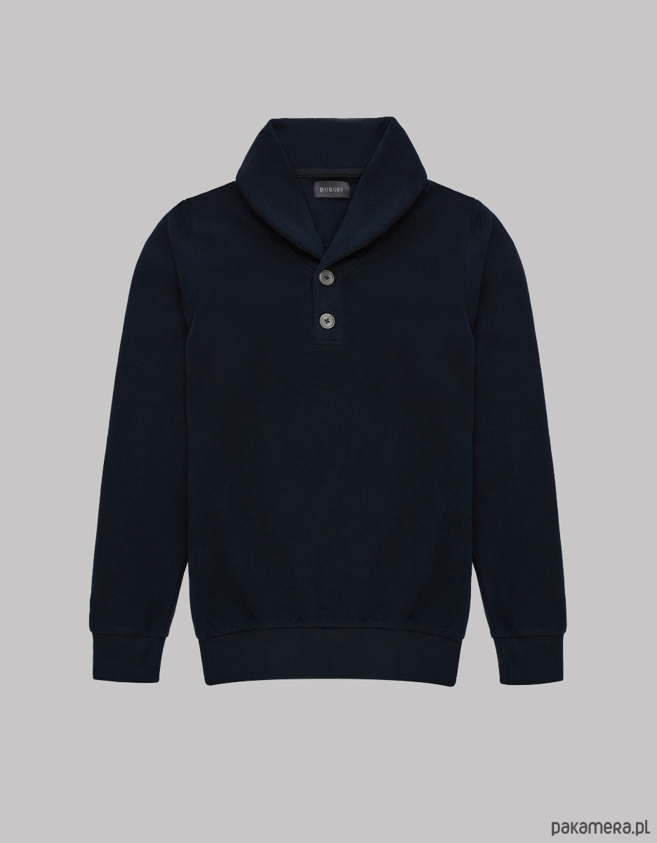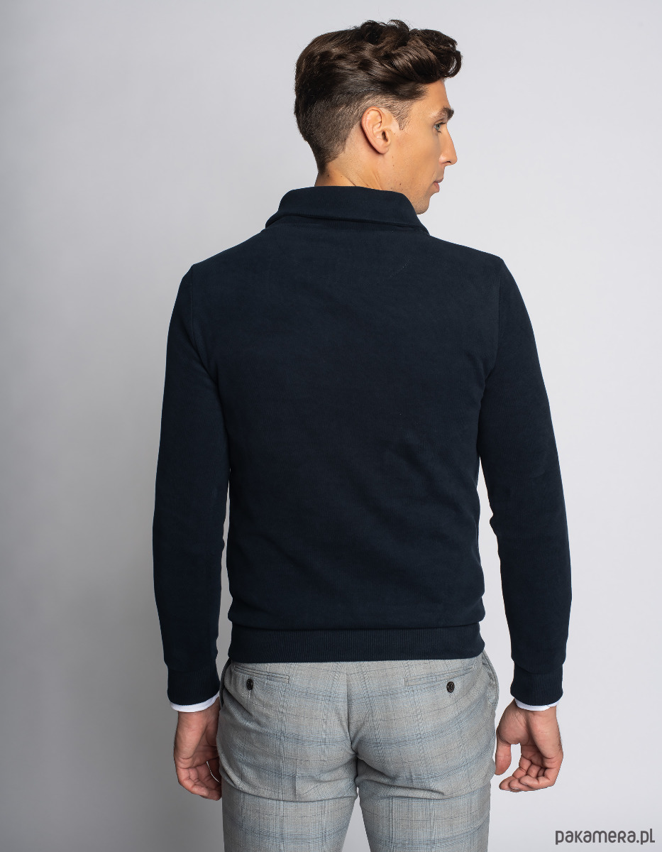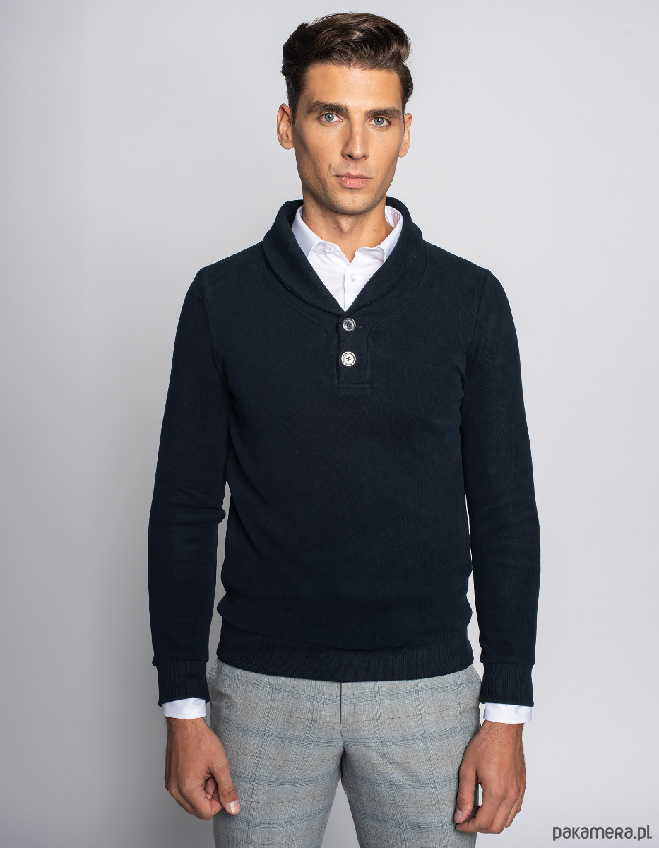 Bluza męska busca granatowy bluza busca granatowy długi rękawBusca to bluza o lekko dopasowanym kroju, w kolorze granatowym, która jest świetną alternatywą dla swetra. Uszyta z elastycznej dzianiny (połączenie bawełny z włóknami syntetycznymi), która daje dużą swobodę ruchów oraz jest niezwykle przyjemna w dotyku. Szalowy kołnierz oraz oryginalne guziki nadają jej eleganckiego charakteru. Idealnie sprawdzi się w chłodniejsze dni w połączeniu z koszulą oraz jeansami lub spodniami chino.