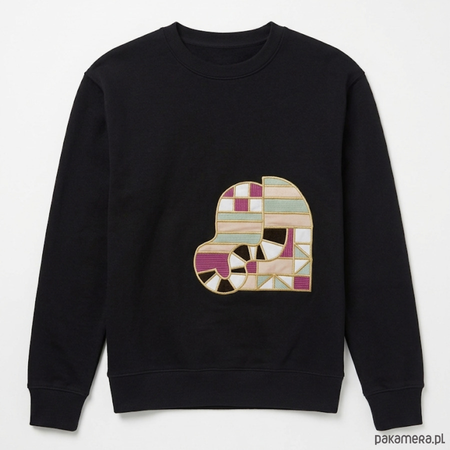 Wysokiej jakości bluza, wyróżniająca się unikalnym, autorskim zdobieniem na plecach. Zamiast standardowego nadruku zastosowaliśmy technikę łączącą precyzyjny haft komputerowy ze wstawkami z miękkiego weluru, co nadaje grafice wyjątkową fakturę i trwałość.
