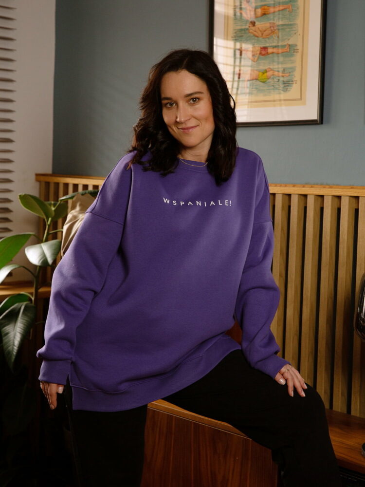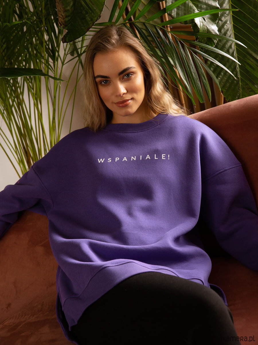 Typowo oversize’owa, długa i ciepła bluza z napisem WSPANIALE! o bardzo luźnym kroju.