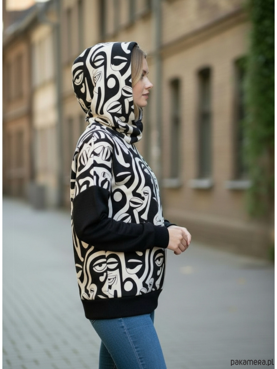 Nowa, wyjątkowa bluza oversize zaprojektowana i uszyta ręcznie z wysokiej jakości dresówki. Autorski, artystyczny wzór z motywem abstrakcyjnych twarzy nadaje jej wyrazisty, niepowtarzalny charakter. To propozycja dla osób, które lubią modę z przekazem i cenią komfort w codziennym wydaniu.