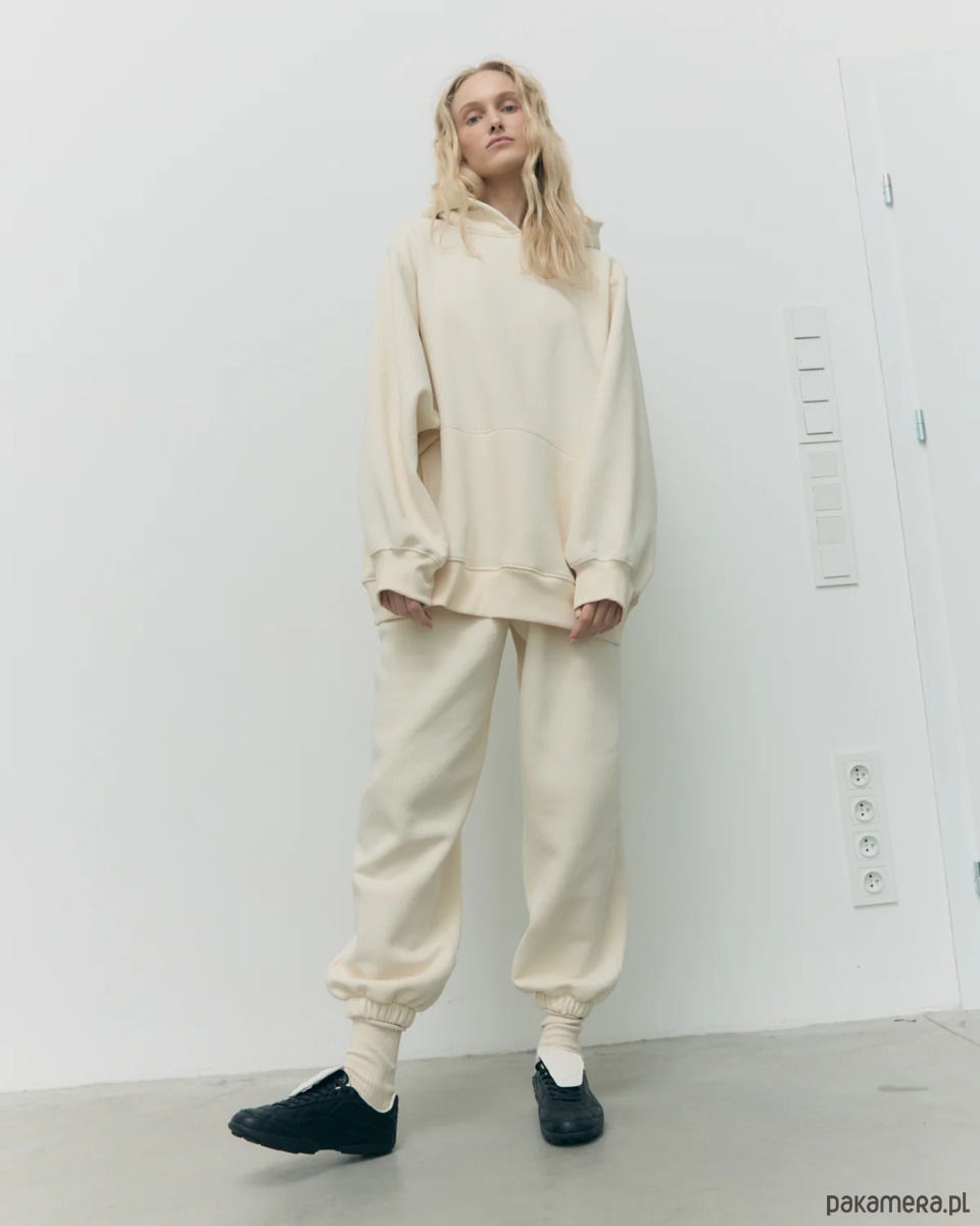 Bawełniana bluza damska Patchouli Antique Ecru to esencja komfortu i ponadczasowej elegancji w kapsułowej garderobie. Uszyta z wysokogatunkowej, mięsistej bawełny premium – od wewnątrz z delikatnym meszkiem, od zewnątrz o jedwabistym chwycie – zapewnia ciepło i wygodę przez cały rok. Jej oversize’owy fason z kapturem idealnie łączy codzienny luz z minimalistycznym stylem.