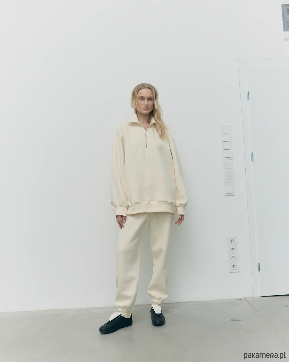 Bawełniana bluza damska Patchouli Antique Ecru to połączenie codziennej wygody z elegancją w minimalistycznym wydaniu. Uszyta z wysokogatunkowej, mięsistej dzianiny bawełnianej premium – od wewnątrz delikatnie drapanej dla miękkości i komfortu, a od zewnątrz gładkiej i jedwabistej w dotyku – gwarantuje komfort noszenia przez cały rok.