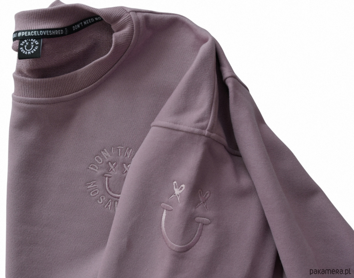 Dół i dłuuuugie, mocno bufiaste rękawy ze ściągaczami. Dużo haftowanego DNNS uśmiechu.