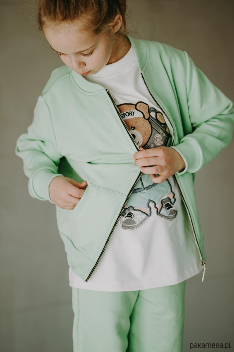 Dresówka nieocieplana. Bluza rozpinana z kieszeniami dla chłopca i dla dziewczynki w stylu bomberki to doskonały wybór dla tych, którzy cenią sobie modę oraz wygodę. Jej designerski wygląd łączy w sobie klasyczną estetykę z nowoczesnym stylem, tworząc niezwykle wszechstronny i stylowy element garderoby. Wykonana z wyjątkowej jakości miękkiego materiału, bluza gwarantuje wygodę i swobodę ruchów. Charakterystycznym elementem bluzy są elastyczne ściągacze na rękawach i w pasie, które zapewniają doskonałe dopasowanie i chronią przed wiatrem.
