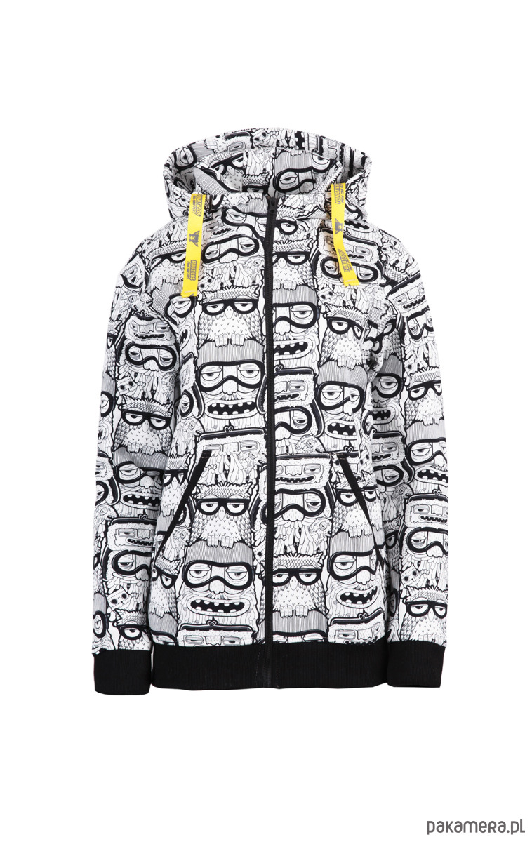 Rozpinana, ciepła bluza z undergroundowym motywem kreskówkowych twarzy.