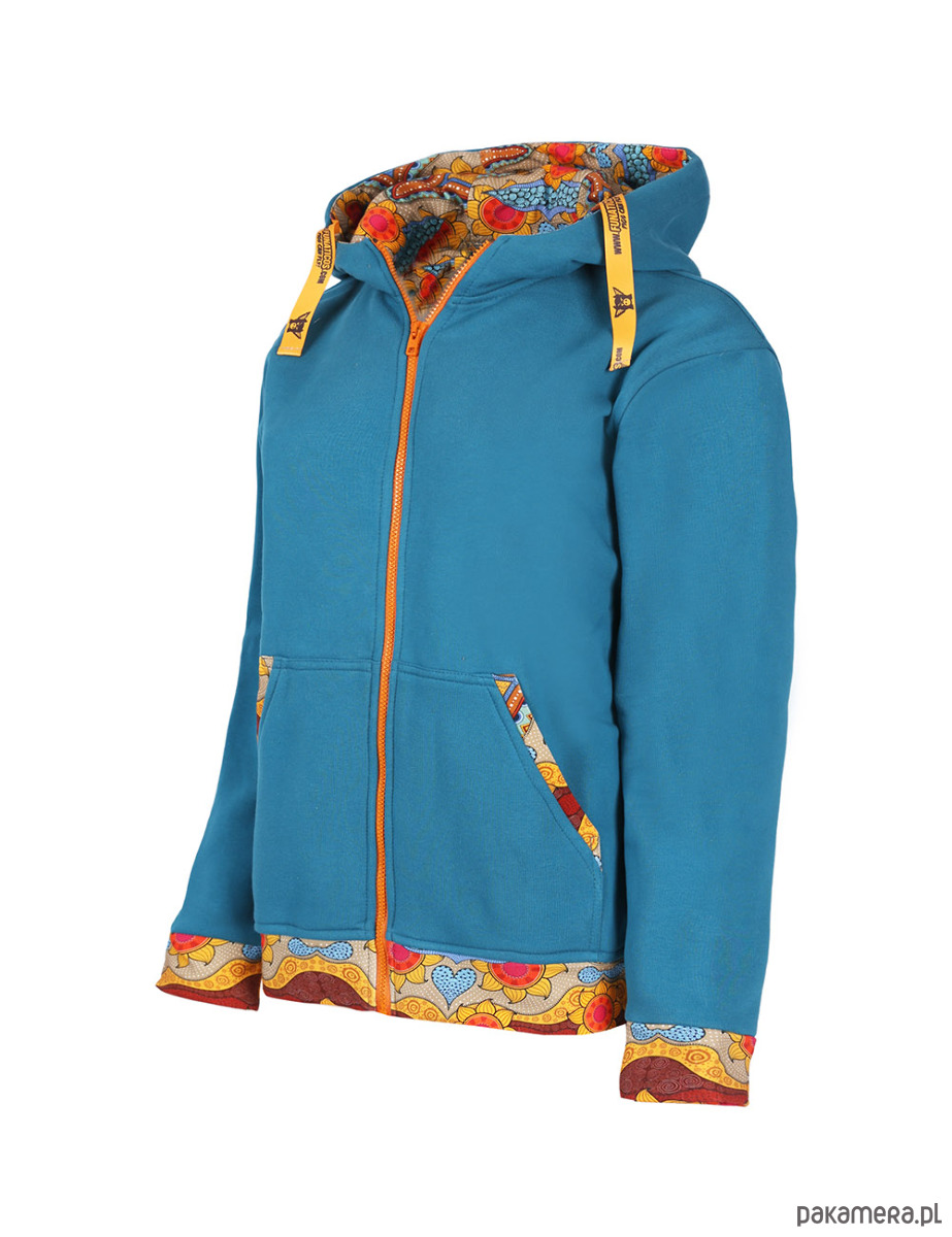 Bluza z wykończeniem we wzór w sunflower (mankiety, ściągacz, kaptur), z pomarańczowym zamkiem.