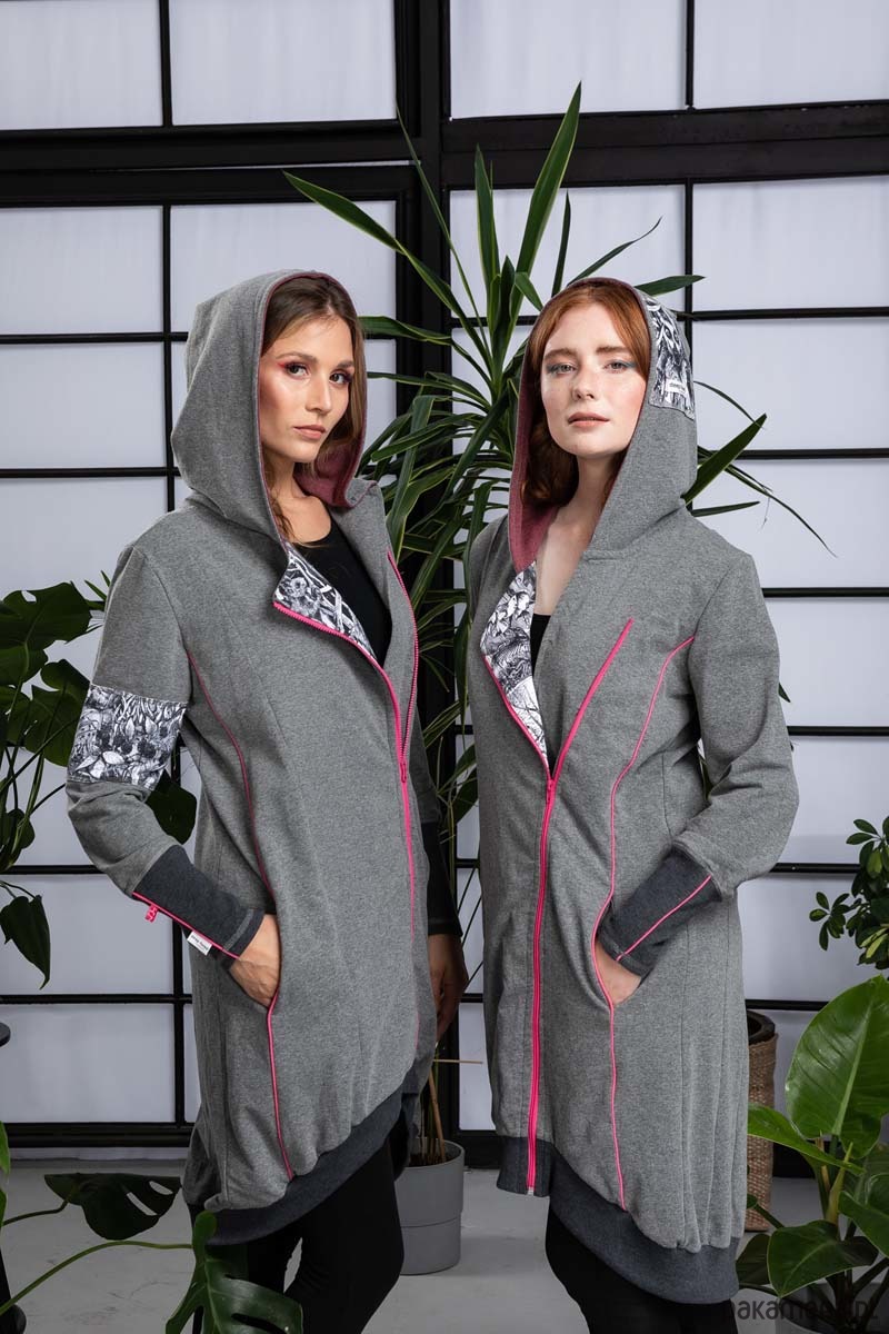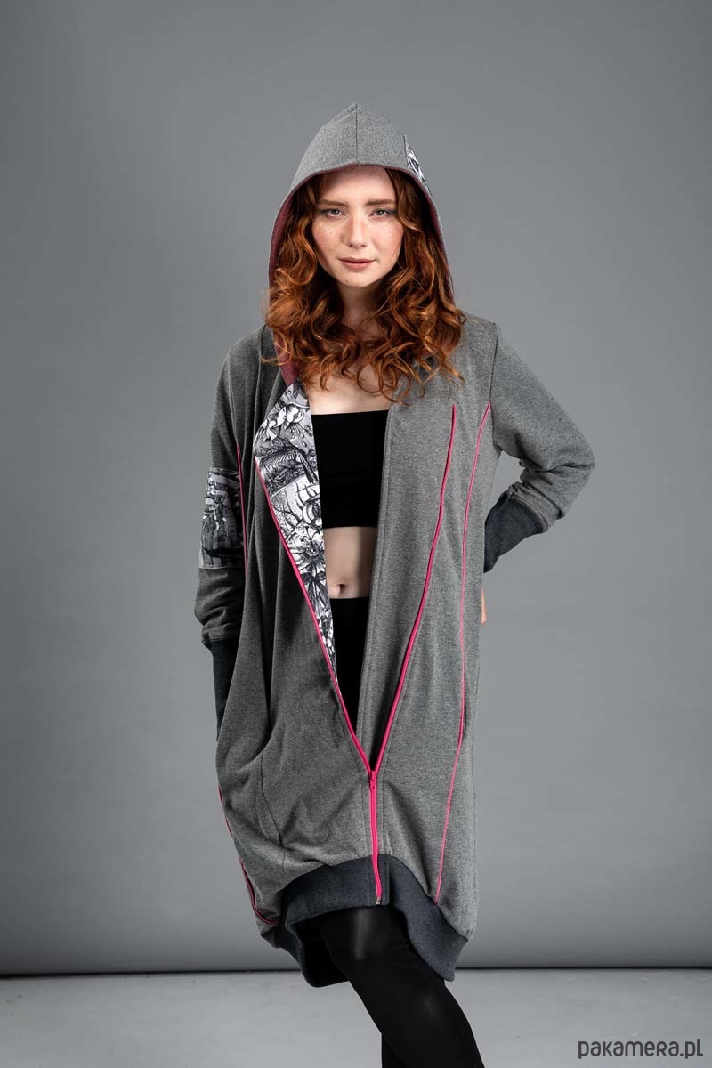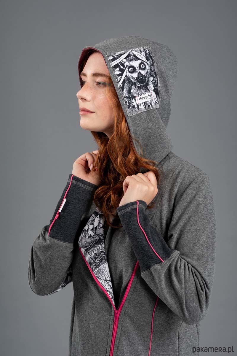 drukowana aplikacja na boku kaptura i podszewce z przodu