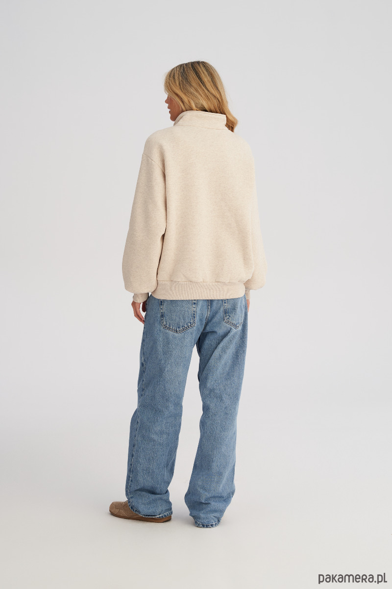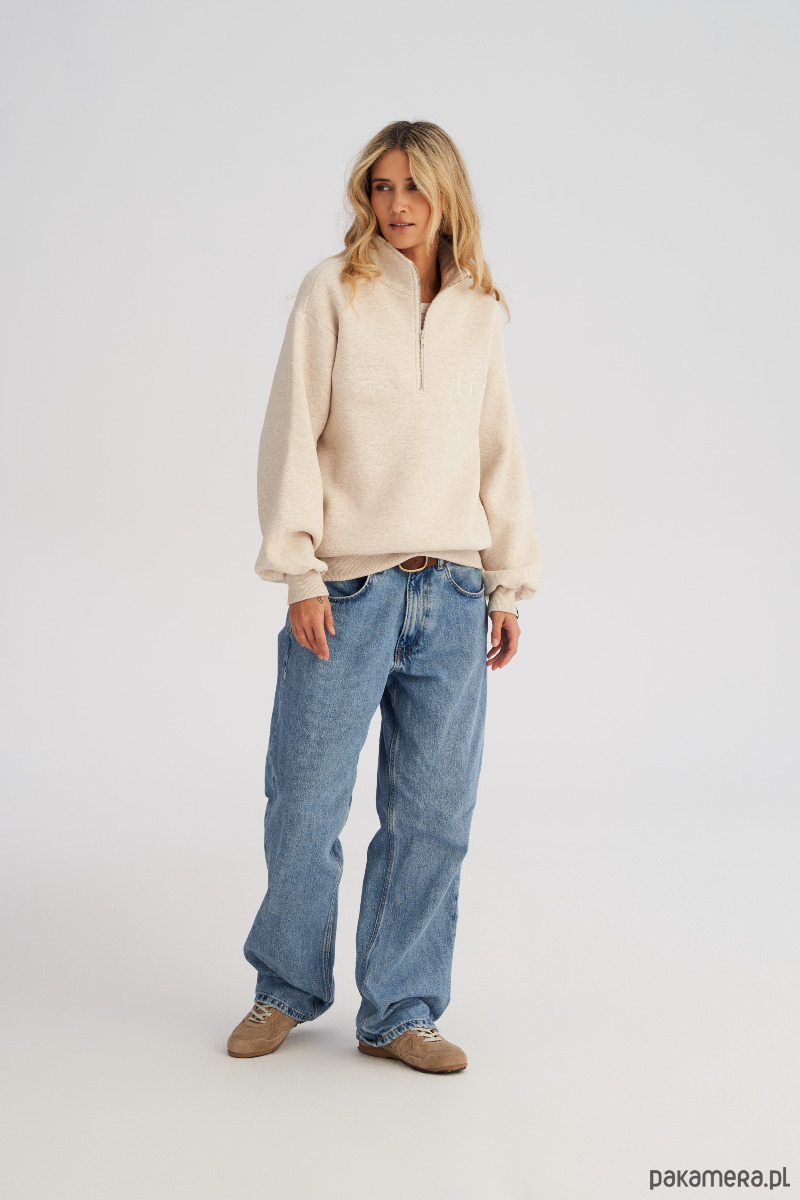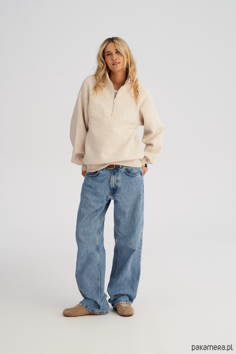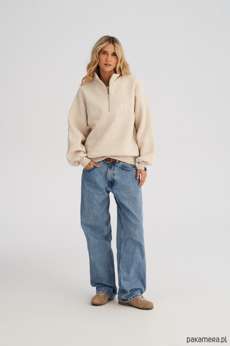 Bluza ze stójką i zamkiem to klasyczny fason typu troyer - ponadczasowy, bardzo dobrze łączący modą casualową z uliczną. Przeznaczony dla wielbicieli wygody, którzy jednocześnie pragną podążać za najnowszymi trendami. Krój jest luźny, ale niezbyt przesadnie oversizowy. Dół ze ściągaczem pozwala nosić ją luźno lub podkreślając sylwetkę. Po bokach zamka znajdują się subtelne hafty. Możesz nosić ją rozpiętą, tworząc nonszalancki look, albo zapiętą pod szyję, gdy zrobi się chłodniej. To model, który bez trudu dopasujesz do codziennych stylizacji - świetnie wygląda zarówno z klasycznymi jeansami, dresami a nawet spódnicą.