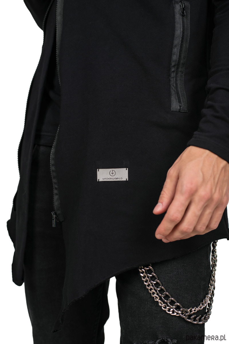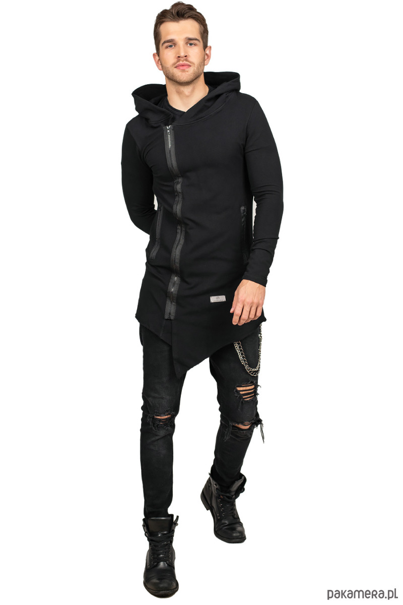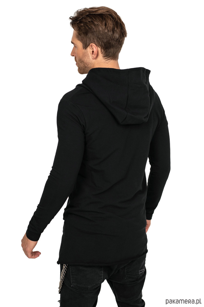 Asymetryczny krój, długie rękawy, duży kaptur i surowe wykończenie nadają bluzie oryginalny look. Po bokach dwie kieszenie.