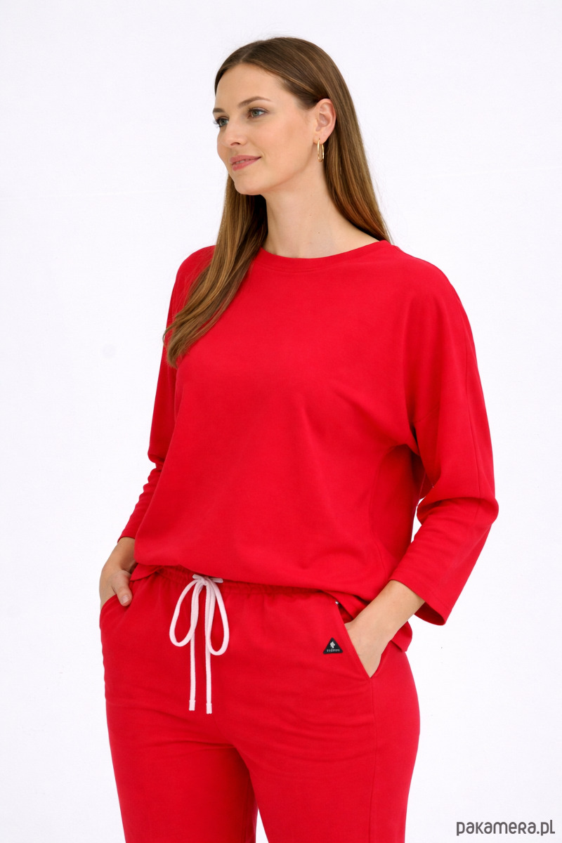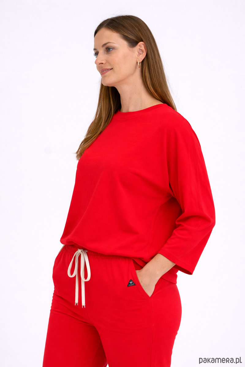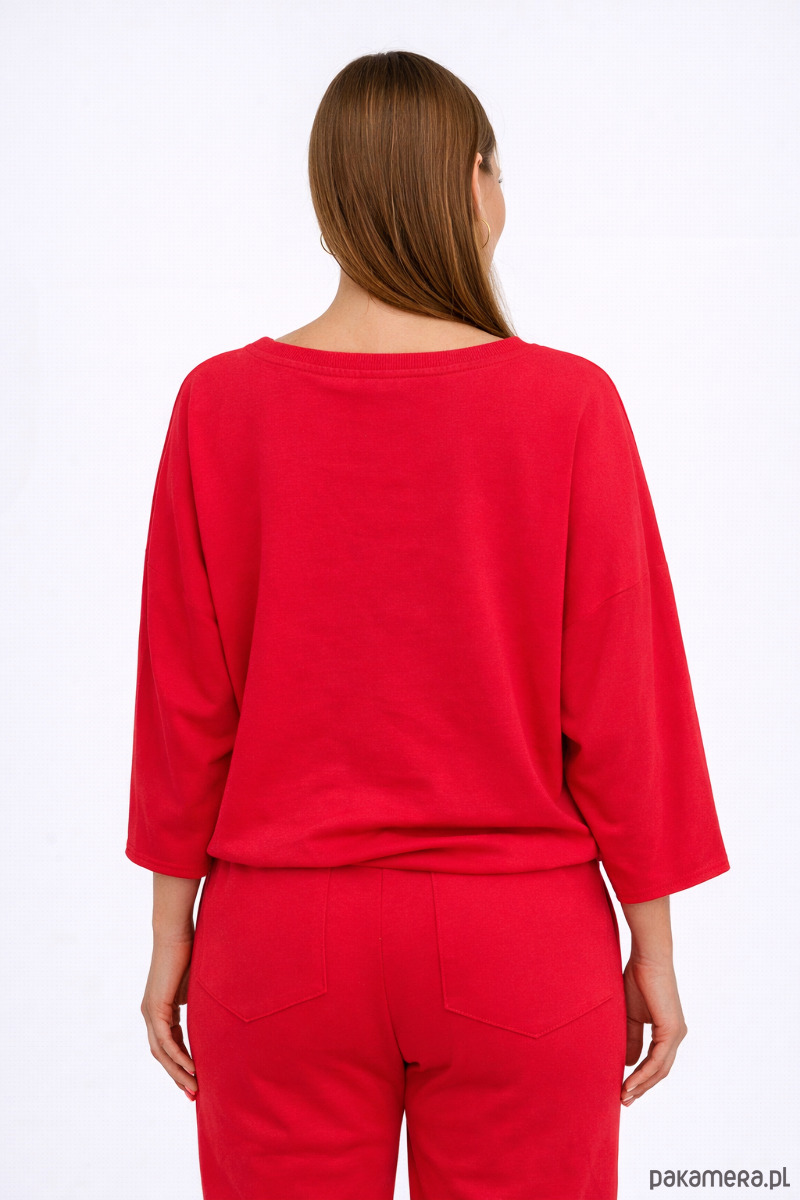 Bluza nietoperz to modny i swobodny element garderoby, który wyróżnia się charakterystycznym krojem. Jej luźny fason sprawia, że jest bardzo komfortowa, a jednocześnie nadaje stylizacji lekkości i elegancji. Wiązanie sznureczkiem w pasie to funkcjonalny detal, który pozwala na regulację obwodu, podkreślając talię i nadając sylwetce ładny kształt. Dzięki temu, bluza może być noszona zarówno w luźniejszej wersji, jak i bardziej dopasowanej, w zależności od preferencji. Materiał, z którego została uszyta, często jest miękki i przyjemny w dotyku, co zapewnia wygodę noszenia przez cały dzień. Taki model doskonale sprawdzi się w codziennych stylizacjach, idealnie współgrając z dżinsami, spodniami typu jogger czy nawet spódnicami. To wszechstronny element, który z łatwością można zestawić z różnymi dodatkami, tworząc niepowtarzalne looki na wiele okazji.