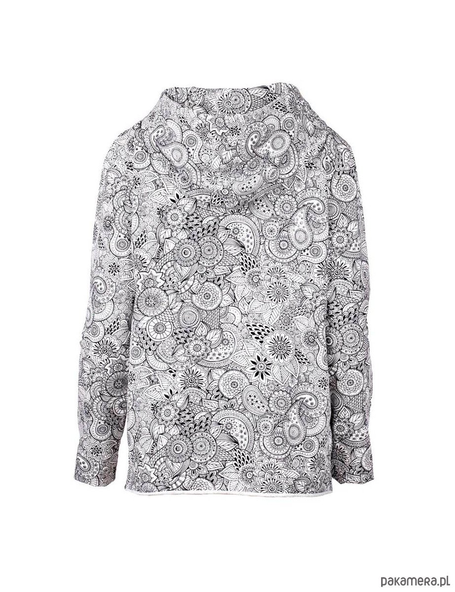 Ta bawełniana bluza z kapturem w czarno-biały wzór paisley to połączenie swobodnej wygody i subtelnej, orientalnej dekoracyjności. Minimalistyczna kolorystyka sprawia, że wzór pozostaje wyrazisty, ale nie przytłaczający — dzięki temu bluza świetnie wpisze się zarówno w codzienny, jak i bardziej artystyczny styl.
