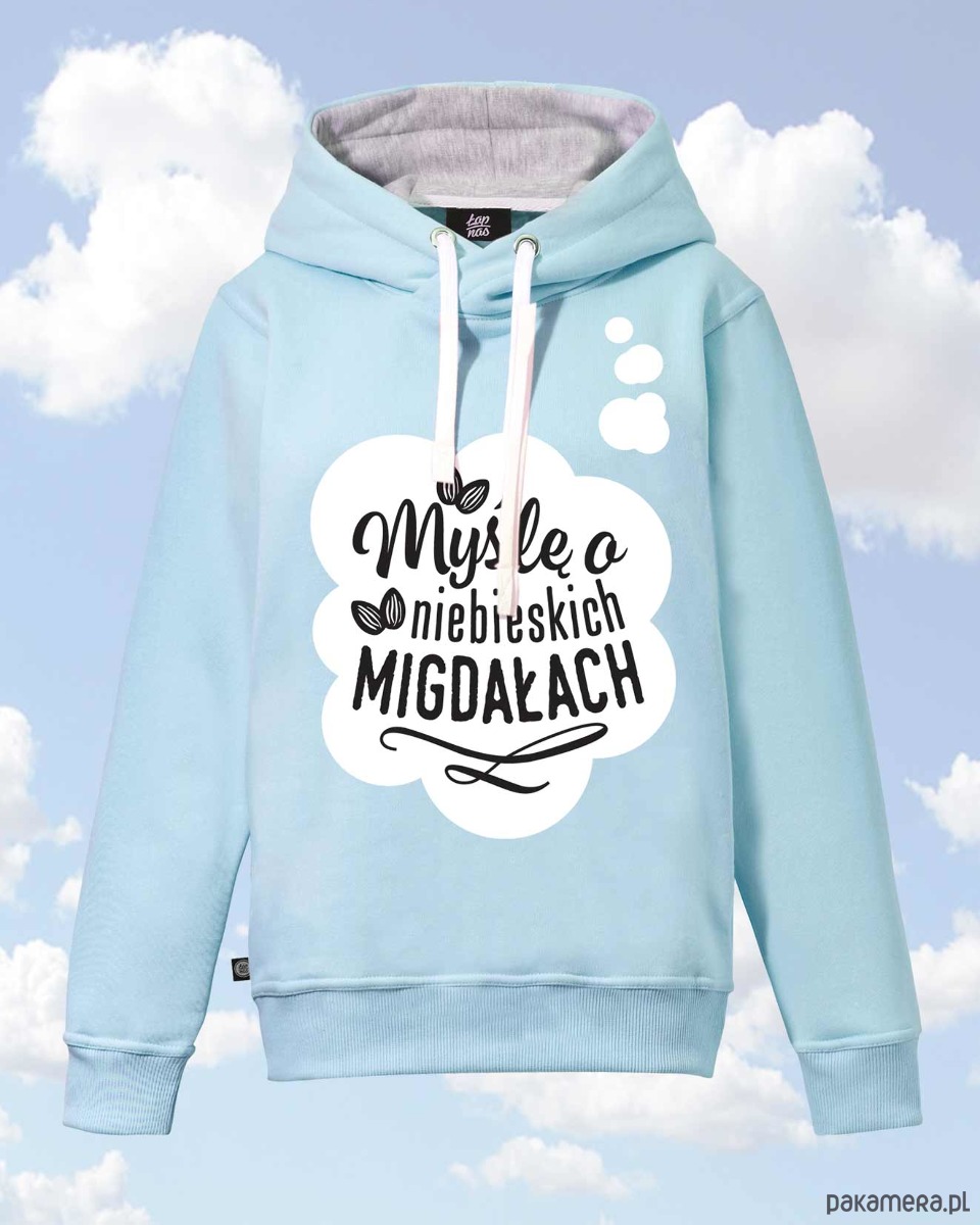 Nowość, nasz hit w wersji z kapturem i kieszeniami. Śliczna Bluza w której jeszcze częściej będziesz myślała o niebieskich migdałach!