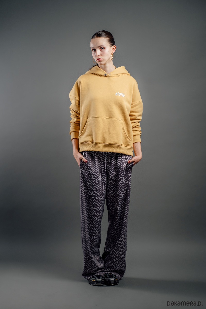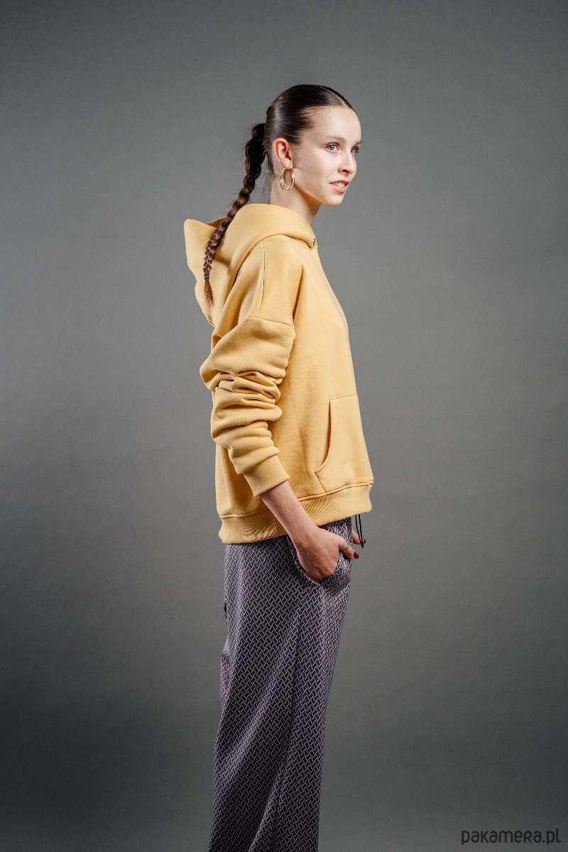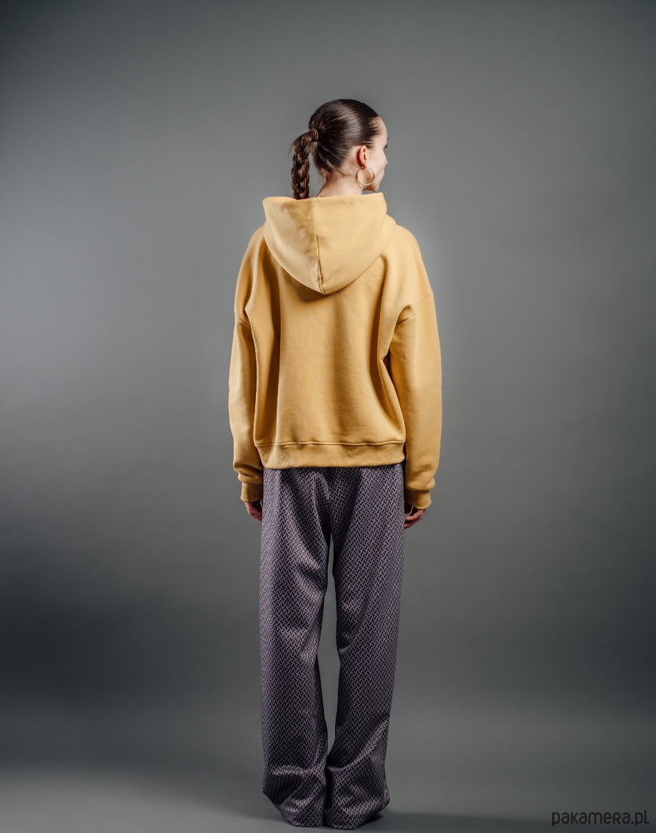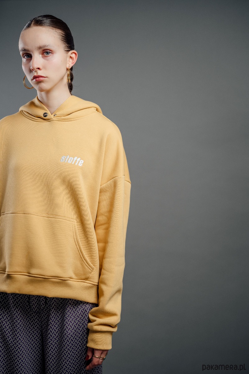 Bluza w kolorze musztardowym o oversize’owym kroju z obniżoną linią ramion zapewnia swobodę ruchu i nowoczesną sylwetkę. Wykonana z miękkiej, wysokogatunkowej dzianiny, gwarantuje komfort noszenia i przyjemne otulenie. Posiada przestronny kaptur oraz klasyczną kieszeń kangurkę, łączy funkcjonalność z prostą. Subtelne logo na piersi podkreśla charakter marki, zachowując spójność z minimalistycznym designem.