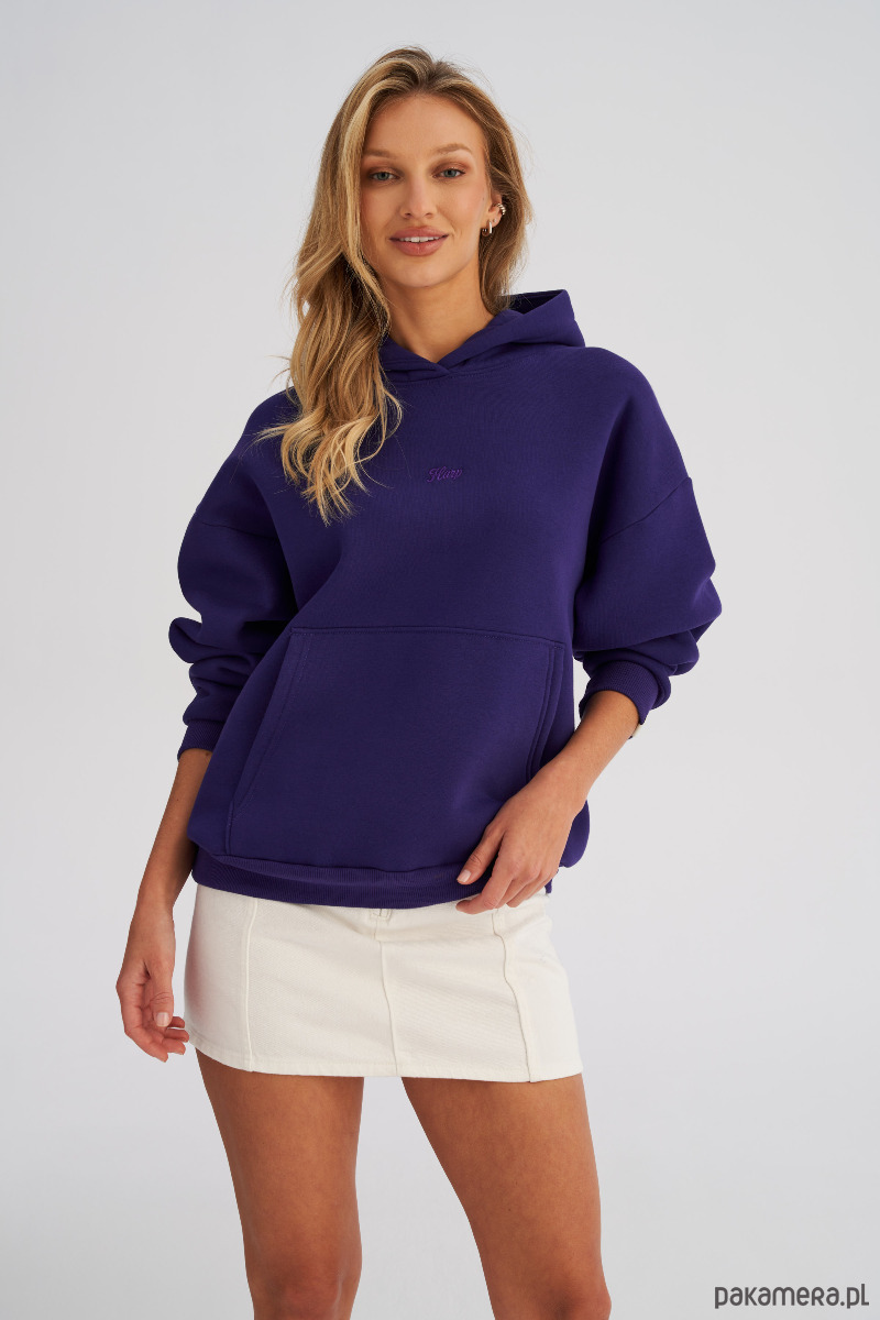 Została uszyta z grubej i mięsistej dzianiny z puszystą warstwą na lewej stronie, która zapewnia ciepło i maksymalną przyjemność podczas noszenia. Na mostku znajduje się subtelny haft ton w ton, który dodaje całości prostoty i ponadczasowego stylu.