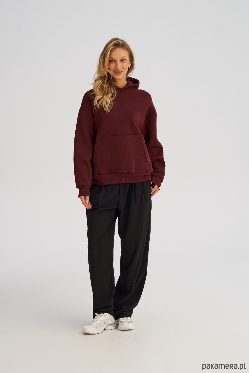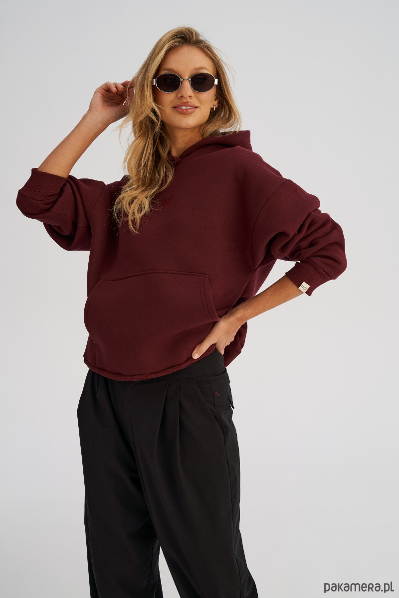 Została uszyta z grubej i mięsistej dzianiny z puszystą warstwą na lewej stronie, która zapewnia ciepło i maksymalną przyjemność podczas noszenia. Na mostku znajduje się subtelny haft ton w ton, który dodaje całości prostoty i ponadczasowego stylu.