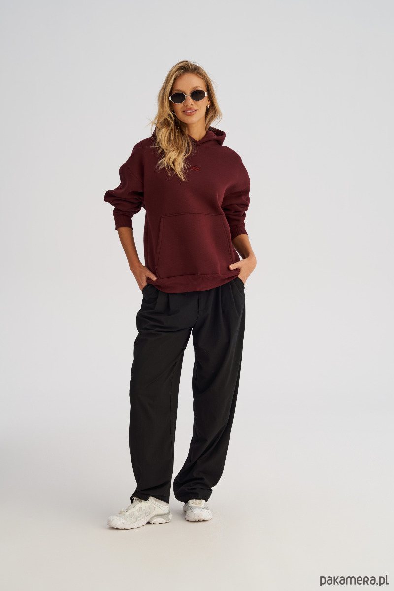 Bluza STUDIO to luźny model, który cieszy się niesłabnącą popularnością. Fason medium oversize nadaje jej swobodny, wygodny charakter i sprawia, że dobrze układa się na różnych sylwetkach. Szerokie rękawy i obniżona linia ramion dodają luzu, a duży kaptur i klasyczna kieszeń kangurka zapewniają funkcjonalność. Luźny dolny ściągacz dodatkowo podkreśla oversizowy efekt i sprawia, że bluza układa się lekko i naturalnie.