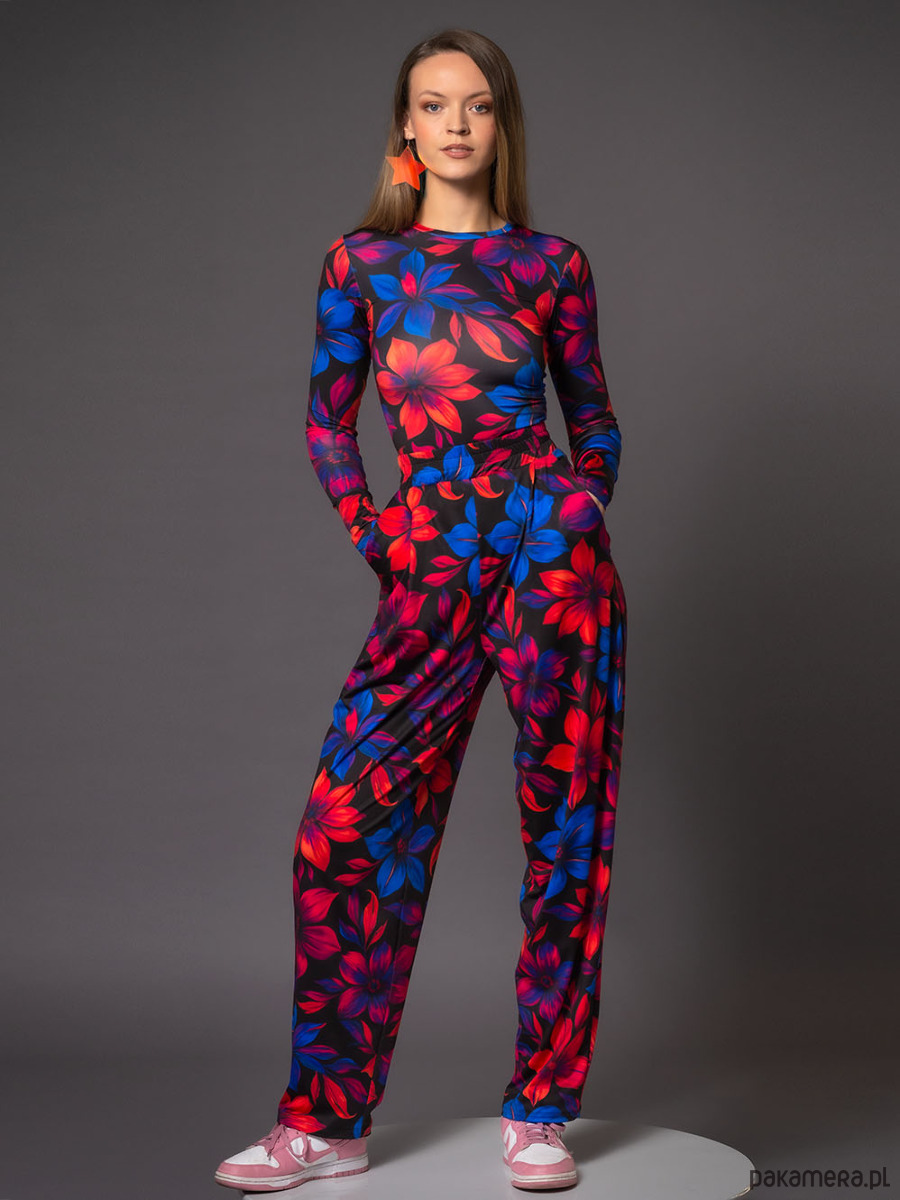 Uszyta z miękkiego, elastycznego jerseyu z autorskim printem Flower Power, łączy wygodę z mocnym kolorem i charakterem. Ma dopasowany krój, długi rękaw i zabudowany, okrągły dekolt, dzięki czemu pięknie podkreśla sylwetkę i stanowi świetną bazę pod wiele stylizacji.