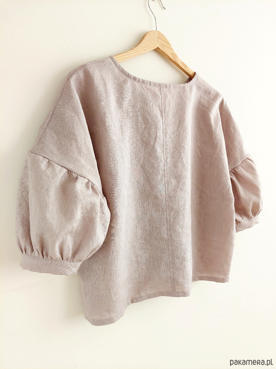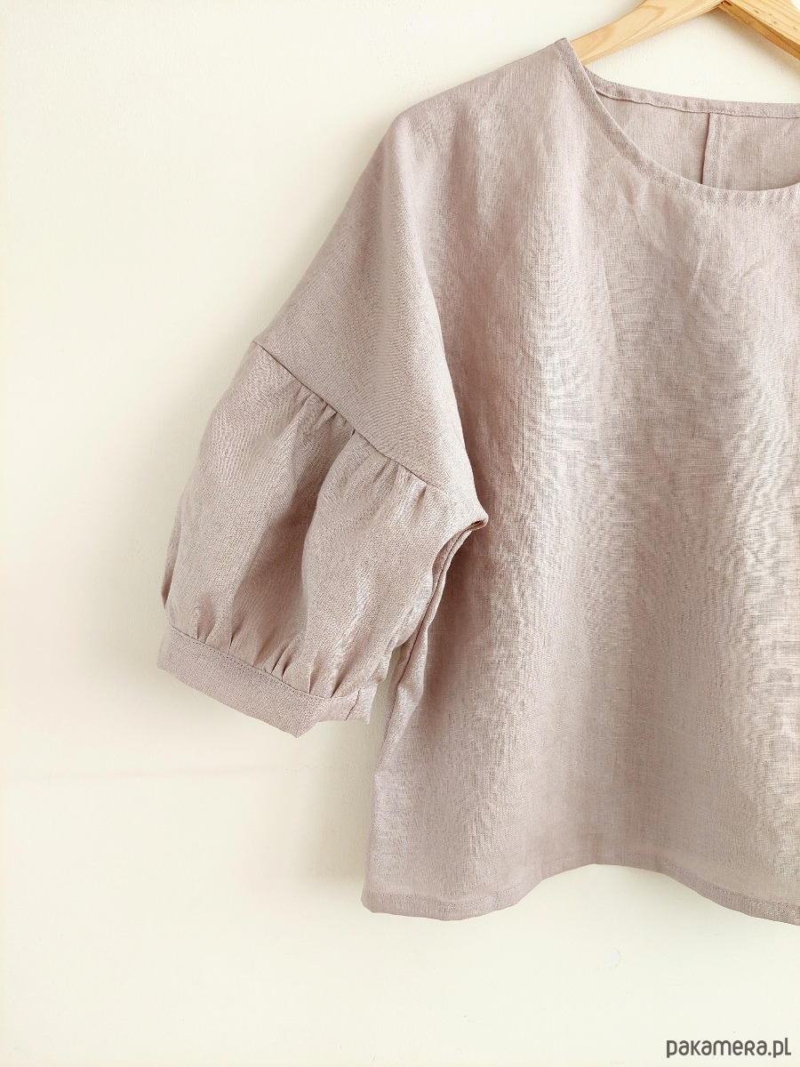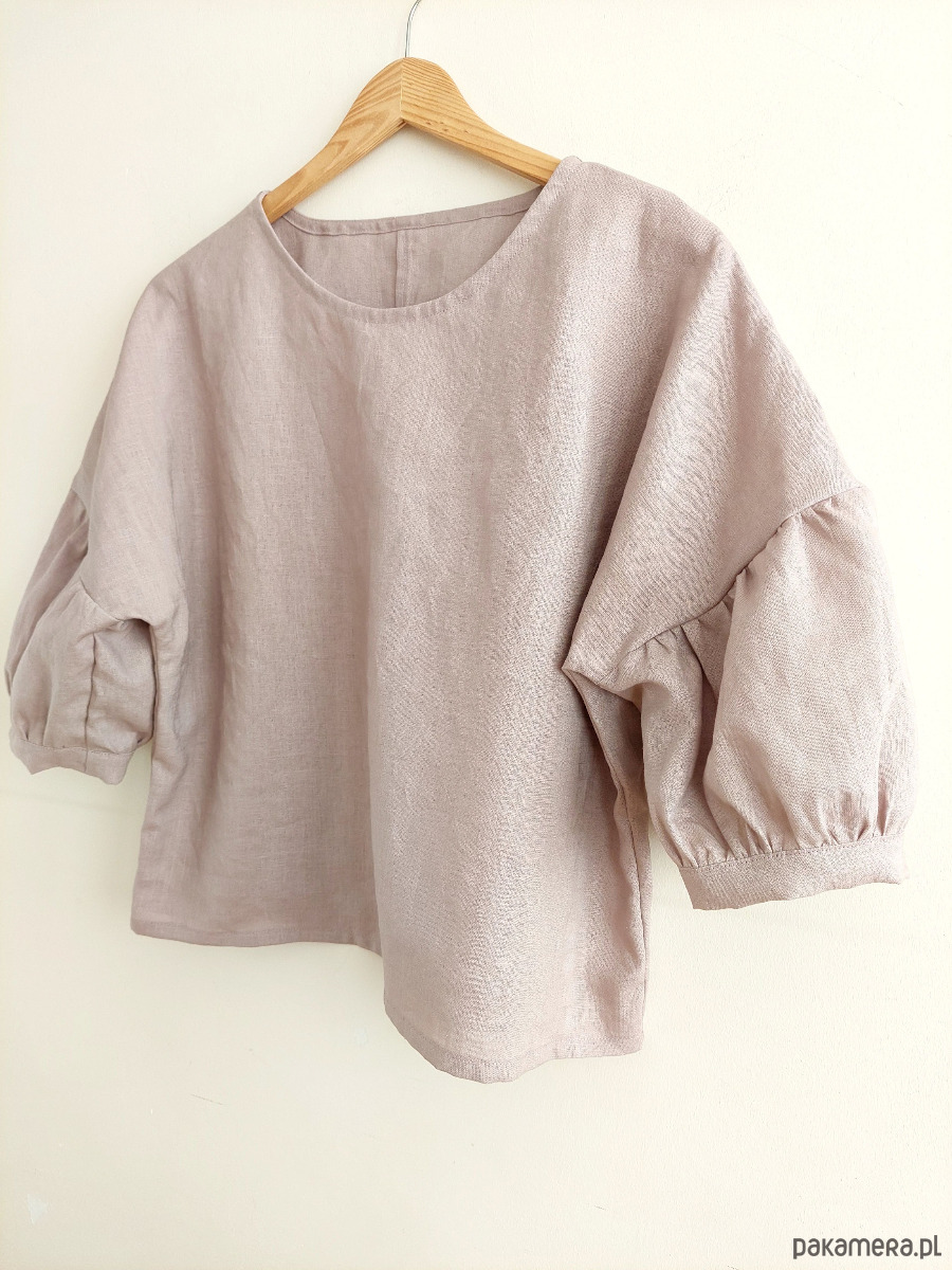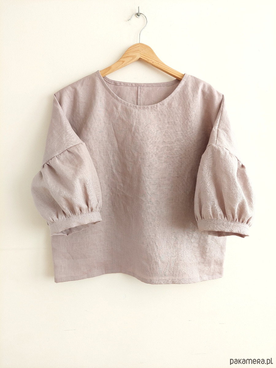 Lniana bluzka"COSMOS" z rękawkiem typu bufa, uszyta w Polsce przez madebyjokpa.