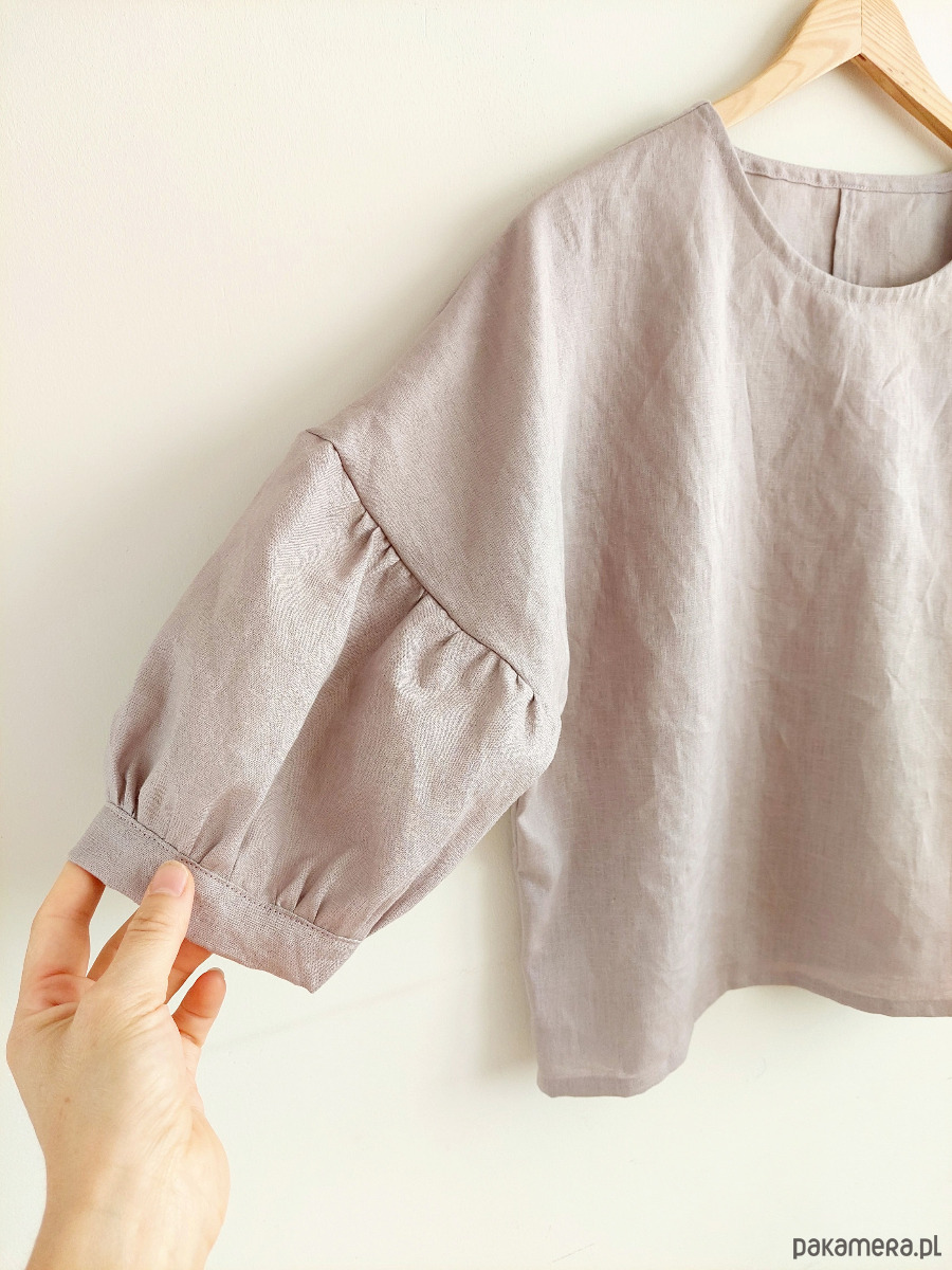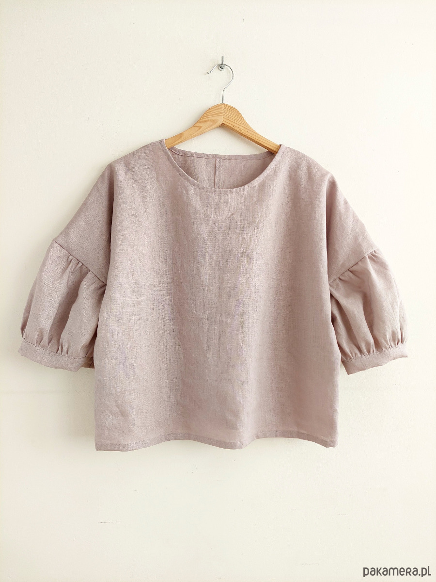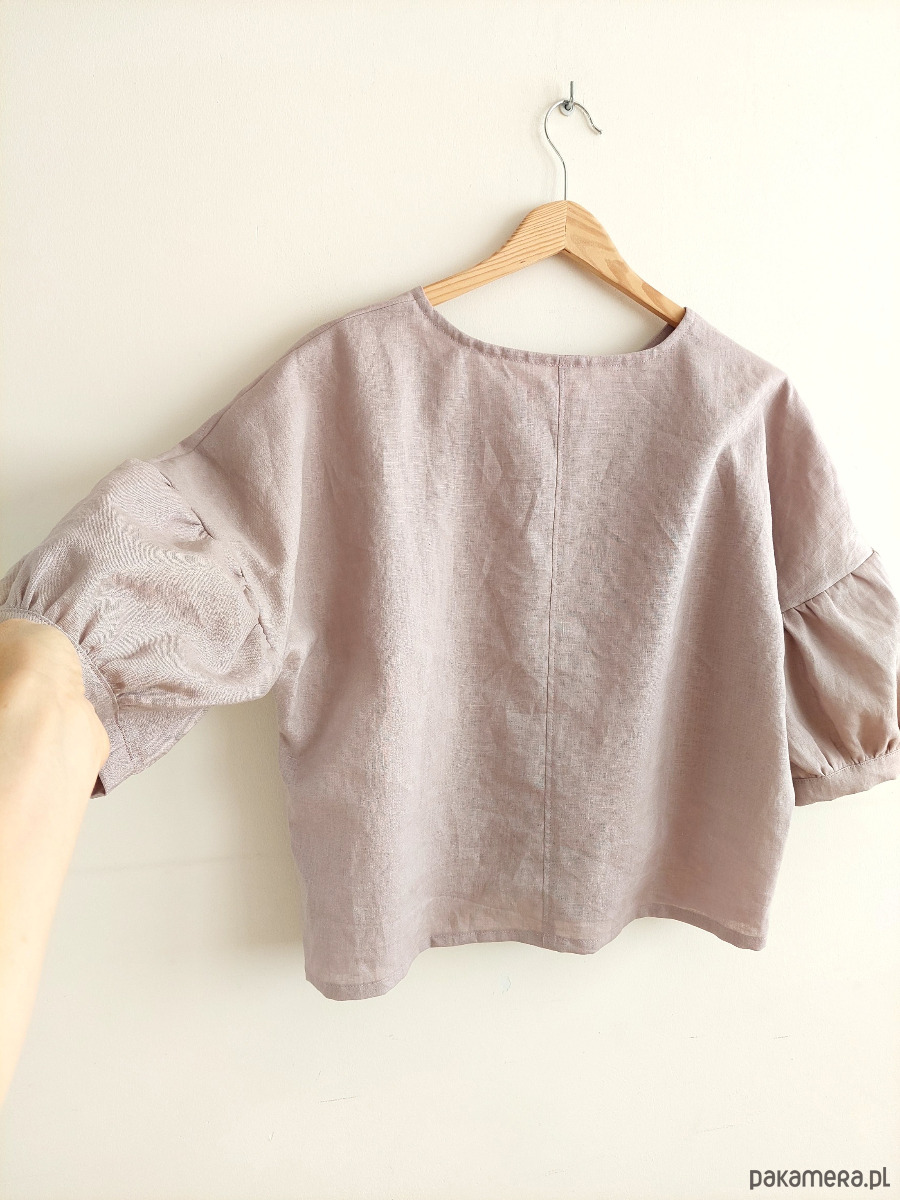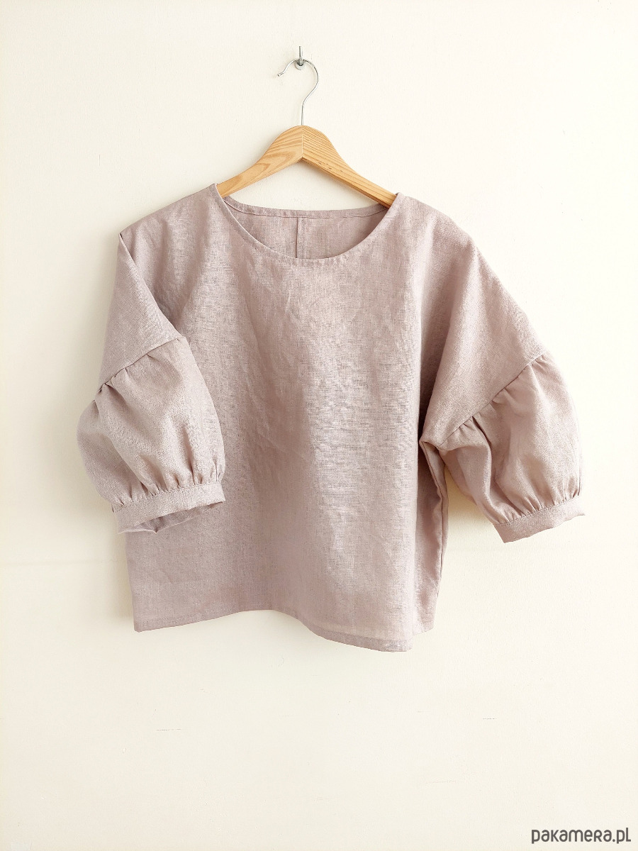 Lniana bluzka"COSMOS" z rękawkiem typu bufa, uszyta w Polsce przez madebyjokpa.