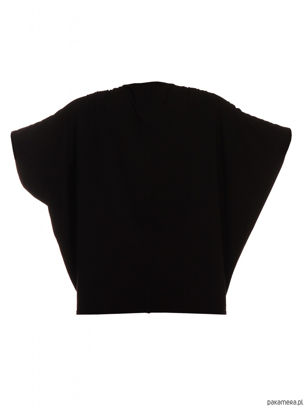 Bluzka luźna. Krój luźny typu „nietoperz”; dekolt w szpic. Wykonana z naturalnej dzianiny wysokiej jakości; tkanina przyjemna dla ciała, przewiewna, rozciągliwa. Proponowana stylizacja ze spodniami typu bryczesy. Materiał o naturalnym składzie przyjemny dla ciała. Kolor bluzki: czarny RAL9005. Długość bluzki ok. 70 cm. Dzianina naturalna: 95% wiskoza, 5% elastyn. Pranie w pralce w temp. 30 stopni; suszenie w stanie rozwieszonym; prasowanie parą.