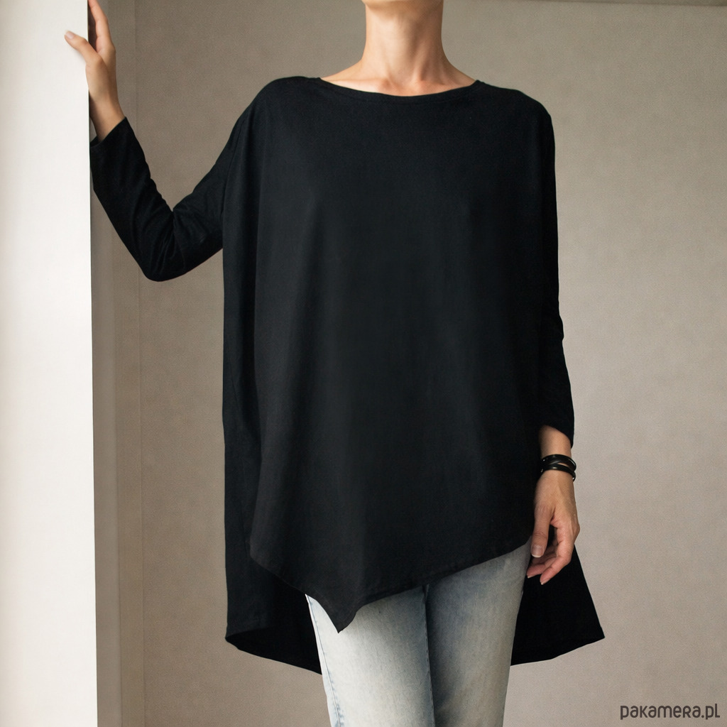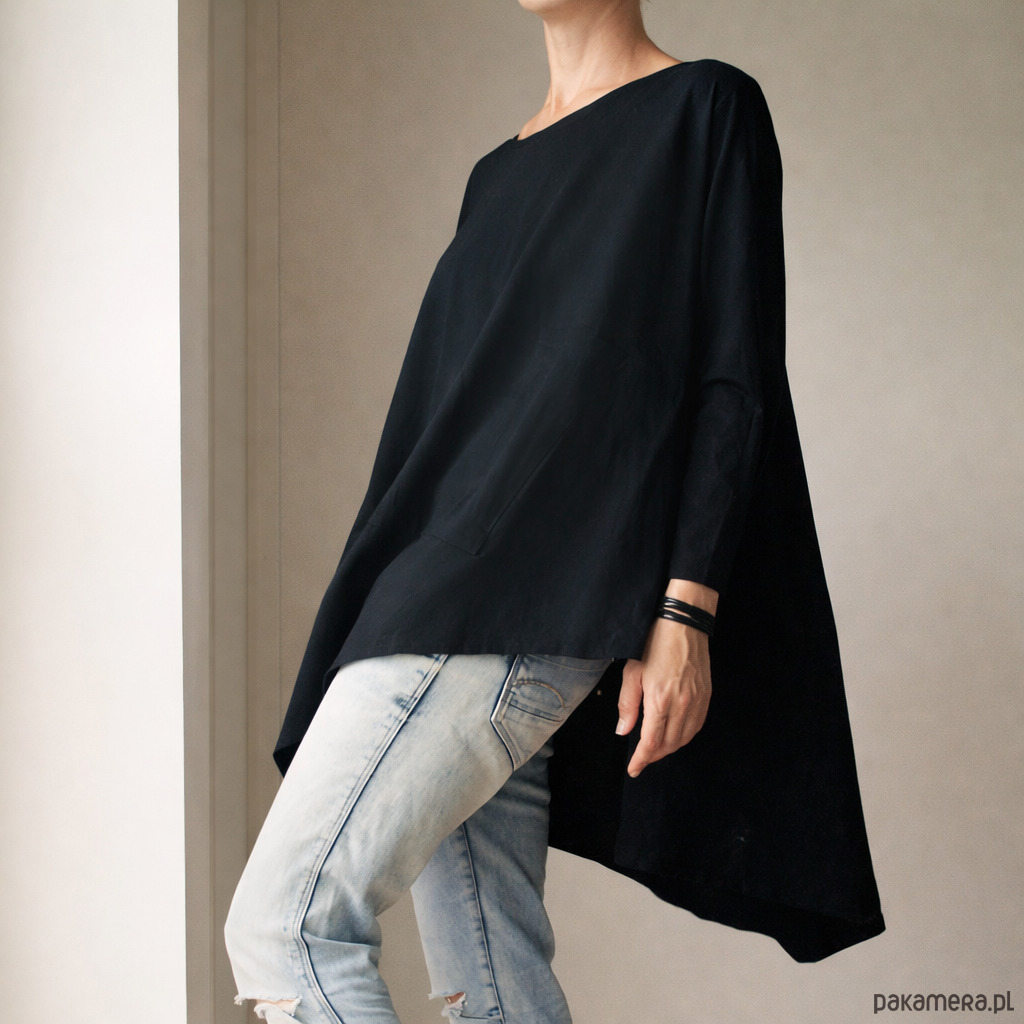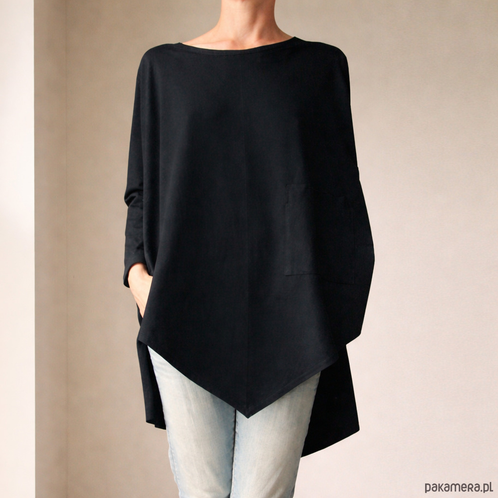 Czarna bluzka asymetryczna z dwiema kieszeniami✨💟