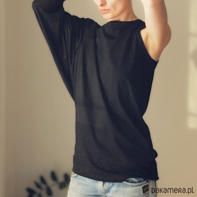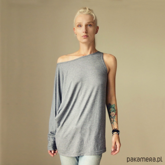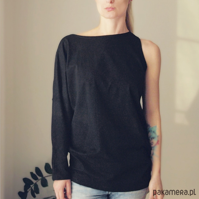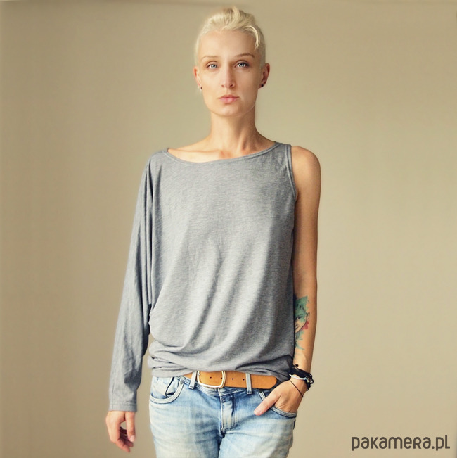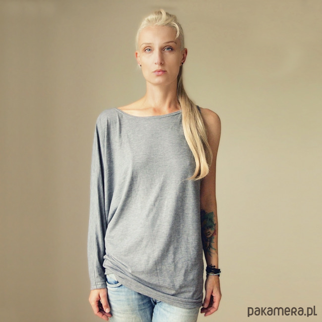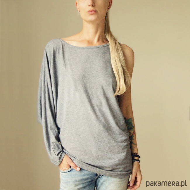 Oryginalna bluzka o luźnym, asymetrycznym kroju.