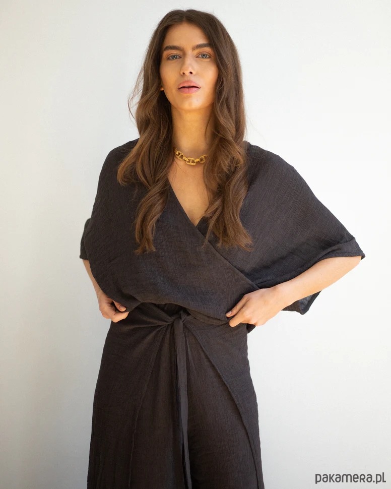 Bluzka kimono Wild navy premium. Najnowszy projekt Patchouli. Uszyte z oryginalnej karbowanej tkaniny w kolorze navy. Niezwykle sexowny fason, szerokie boho rękawy opadające na ramiona. Eteryczny fason, guma z tyłu w talii oraz tekstura tkaniny to 10/10 komfortu i stylu. Połącz bluzką damską Wild ze spodniami do kompletu.