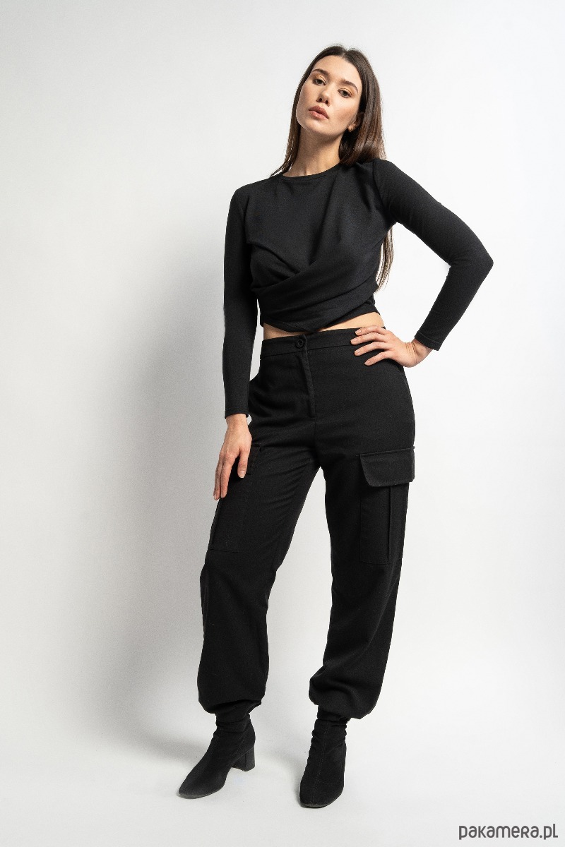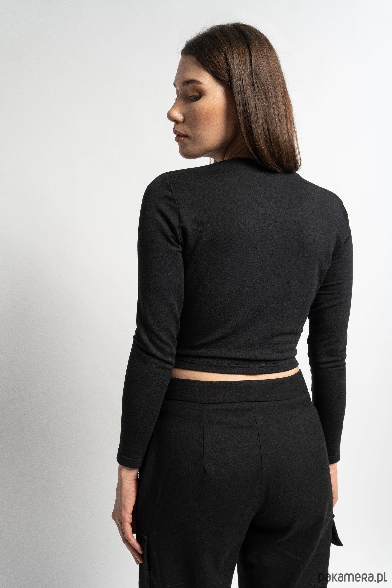 Bluzka z długim rękawem i efektowną zakładką z przodu o skróconym kroju. Fason maksymalnie wysmuklający talię i podkreślający biodra. Podkreśla w sylwetce kształt klepsydry. Bluzka została wykonana z przyjemnego dla skóry i oddychającego modalu. Jest elastyczna, świetnie dopasowuje się do ciała. Poprawnie wysuszona nie wymaga prasowania. Idealna na wiosnę, a także chłodniejsze letnie dni i wieczory.