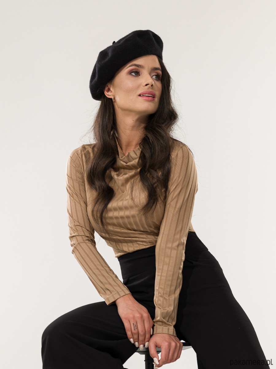 Piękna bluzka z lejącym półgolfem. Długi rękaw. Paski na materiale cudownie się mienią.