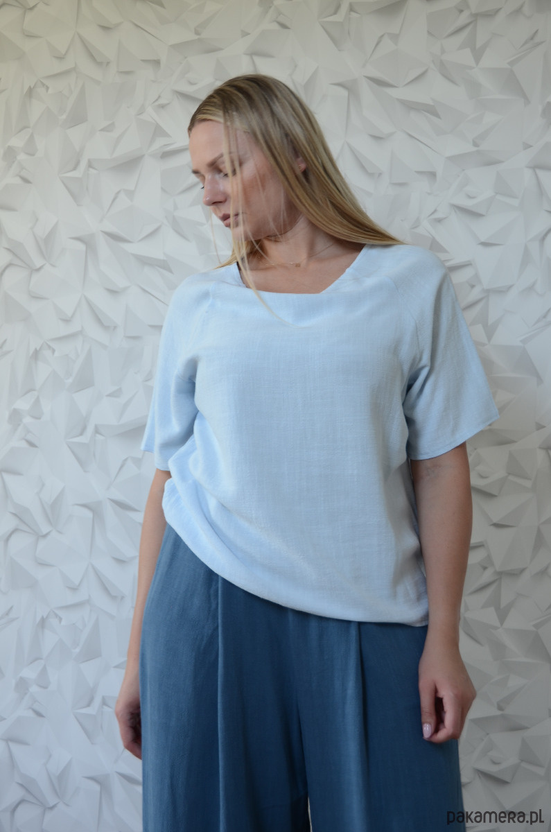 Bluzka len/wiskoza w kolorze niebieskiego akwamarynu