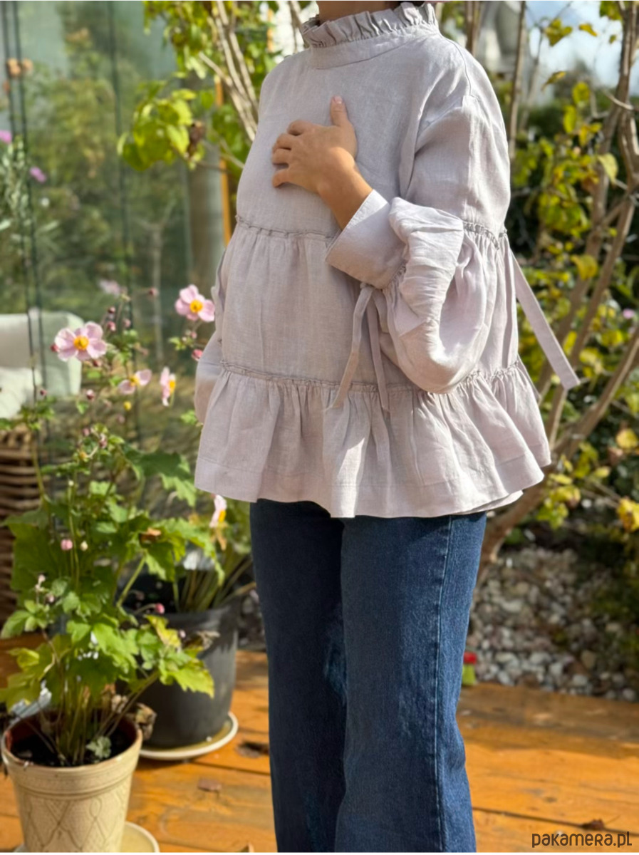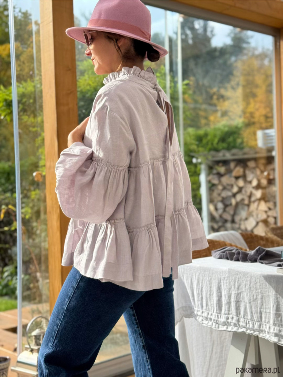 * Materiał: Bluzka została wykonana z najwyższej jakości lnu, który posiada certyfikat OEKO-TEX® Standard 100. Len jest naturalnym materiałem o doskonałych właściwościach termoregulacyjnych – oddychający, lekki i przyjazny dla skóry, zapewnia komfort noszenia przez cały dzień.