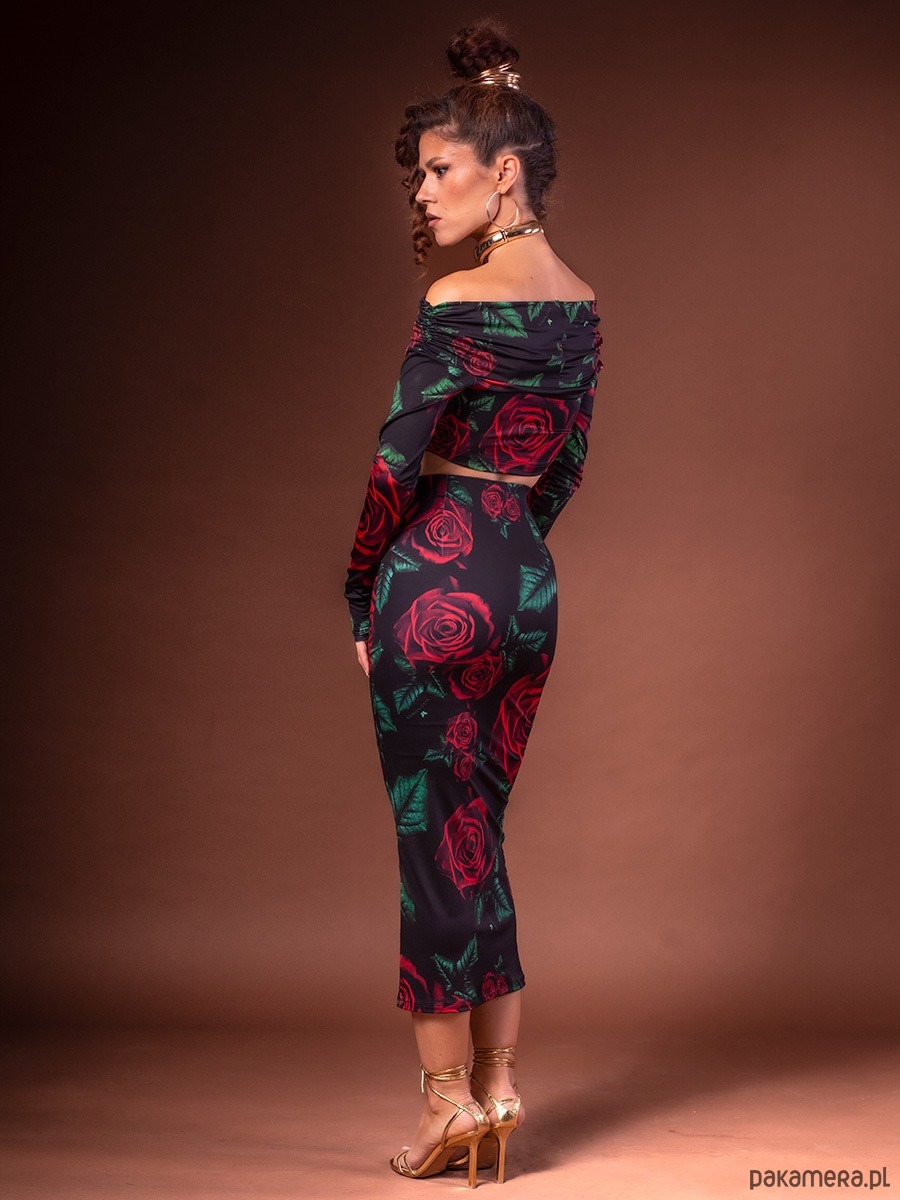 Skład materiału: Nowoczesny jersey wykonany z mikrowłókna z dodatkiem elastanu, który dzięki zastosowanej specjalnej technologii zapewnia idealne dopasowanie kreacji do sylwetki, jednocześnie nie prześwitując. Po praniu odpowiednio rozwieszony nie wymaga prasowania. Posiada certyfikat Oeko-Tex.