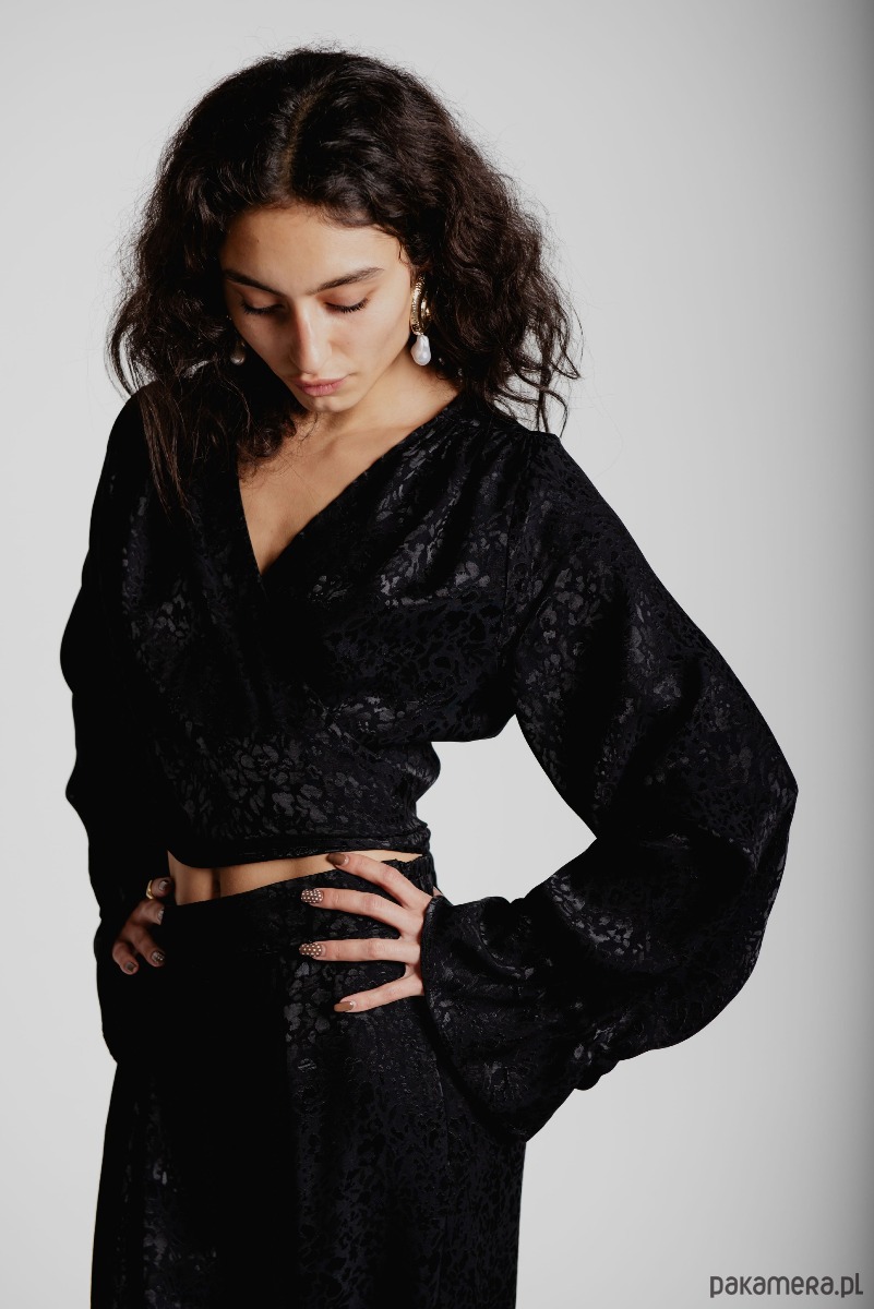 Żakardowy wzór (panterka) dodaje bluzce głębi i elegancji, sprawiając, że każda stylizacja nabiera unikalnego charakteru.