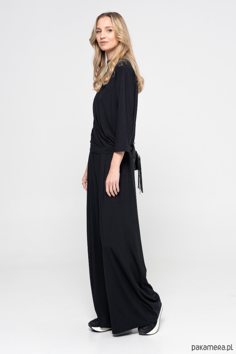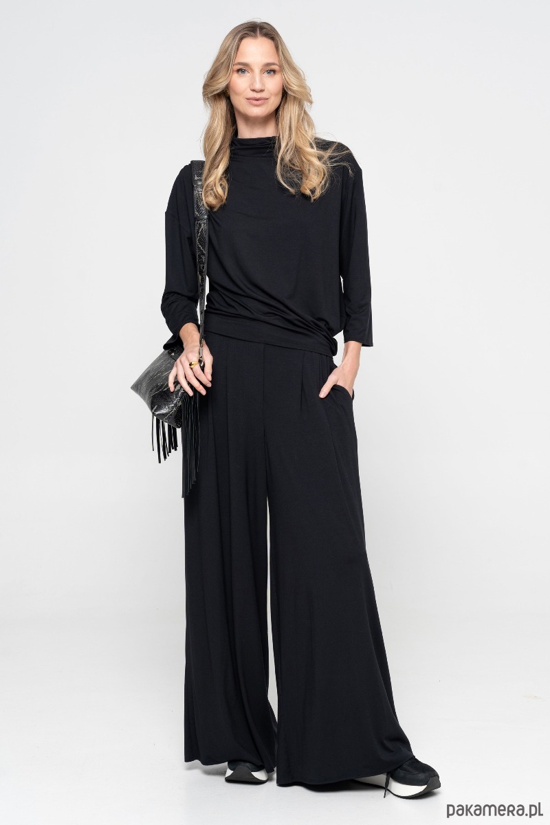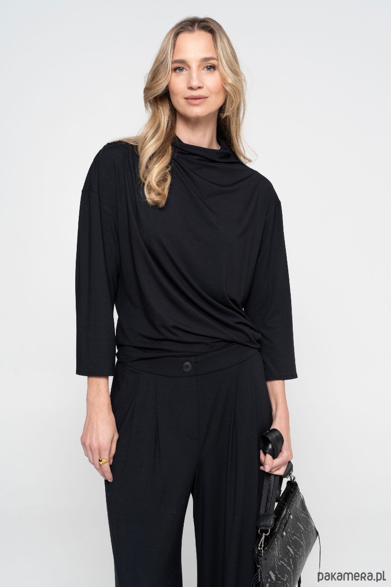 Marszczona bluzka z półgolfem. Rękaw w długości 3/4. Drapowanie po boku z opadającymi ramionami.