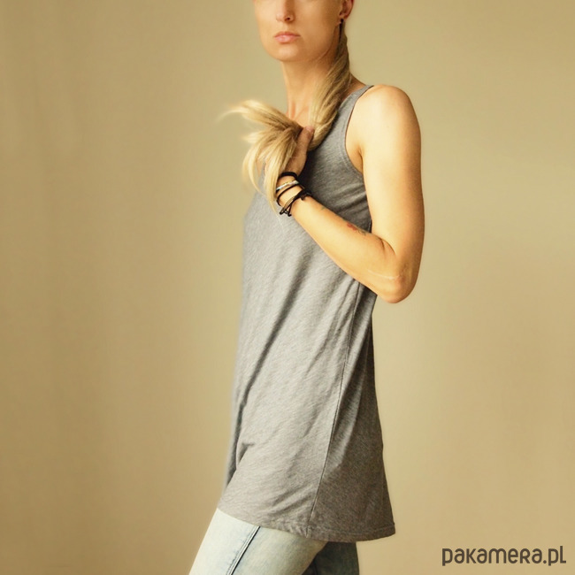 Oryginalna bluzka o luźnym, asymetrycznym kroju.