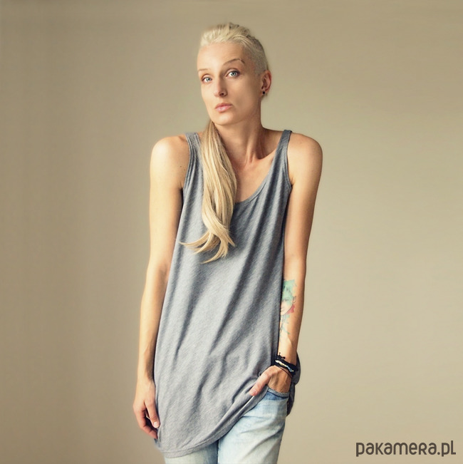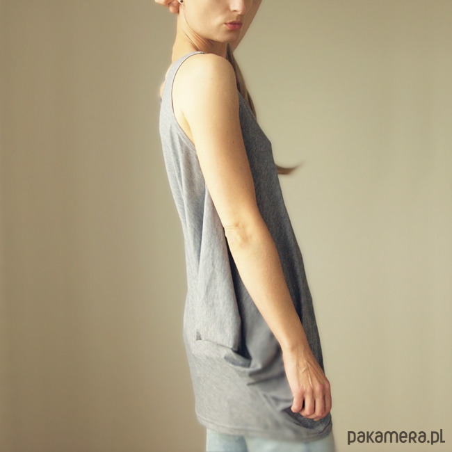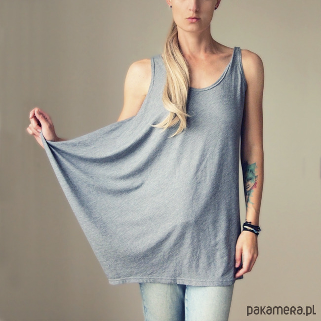 Oryginalna bluzka o luźnym, asymetrycznym kroju.