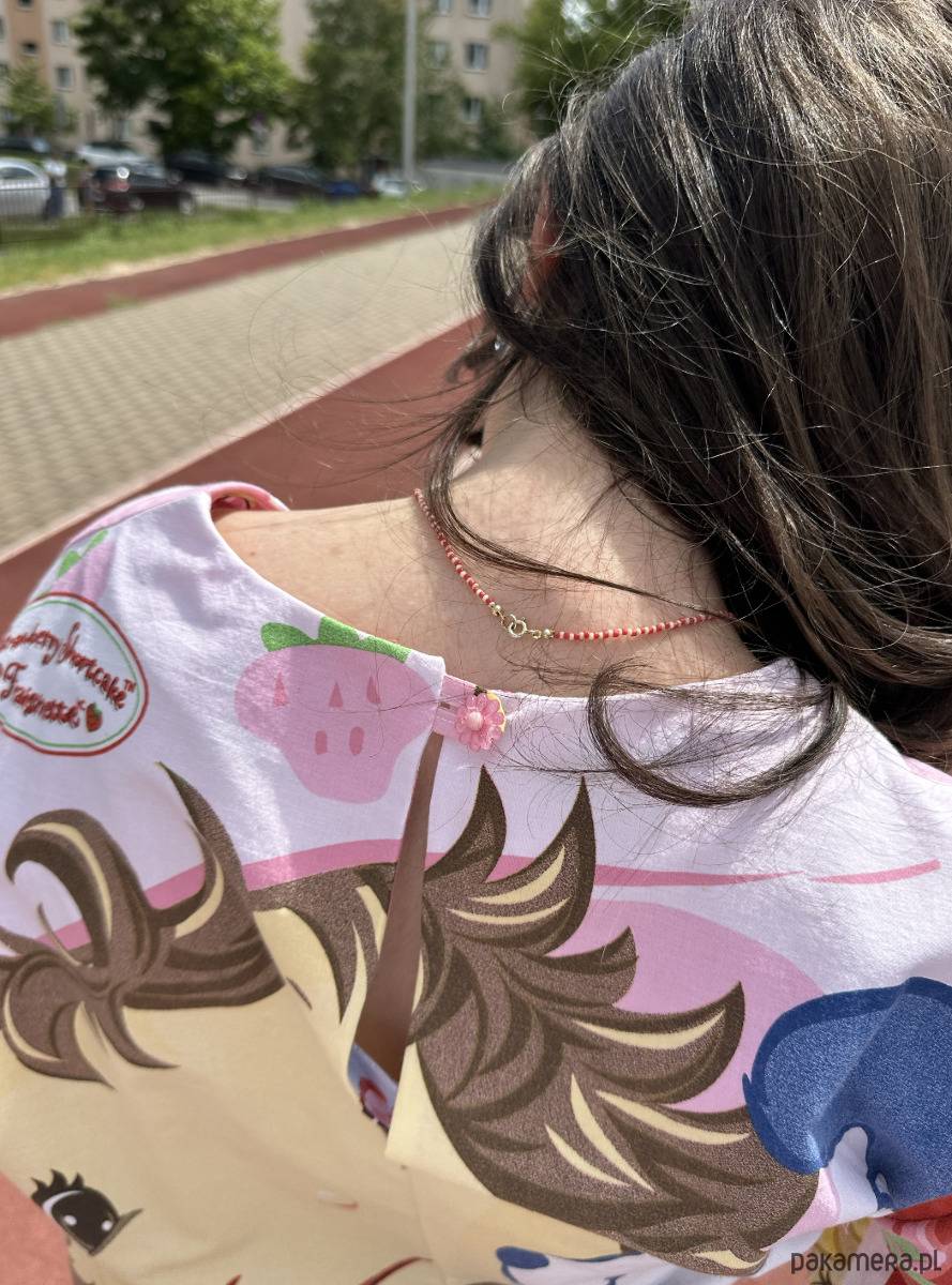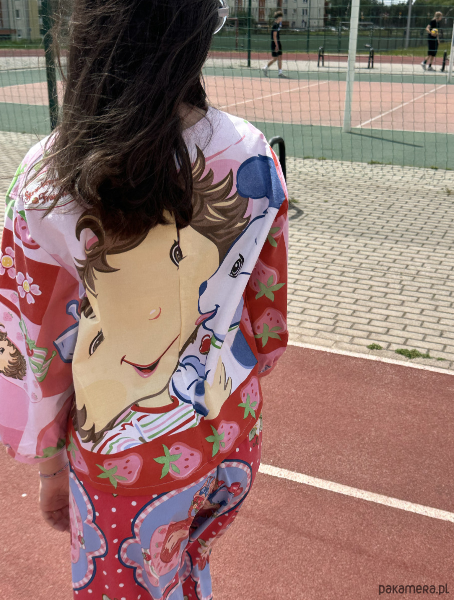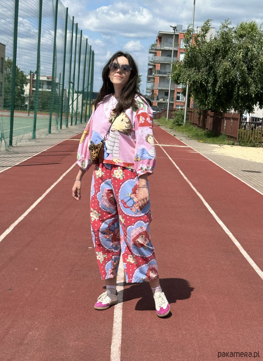 Oversizowa bluzka z pościeli z drugiego obiegu. Materiał został znaleziony w lumpeksie, przysłała nam go obserwatorka albo zdobyłam go na jednej z grup internetowych.